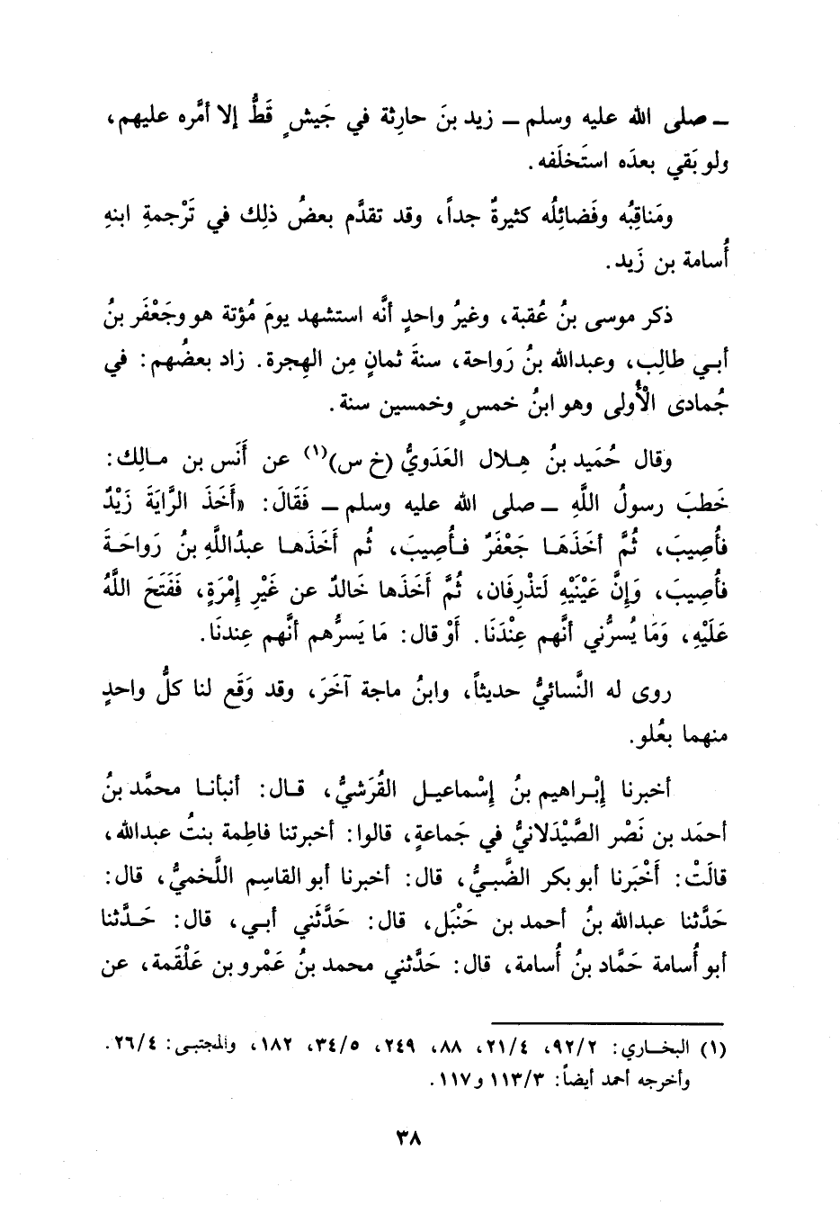 (1) البخاري: 2 / 92، 4 / 21، 88، 249، 5 / 34، 182، والمجتبى: 4 / 26. وأخرجه أحمد أيضا: 3 / 113 و117.