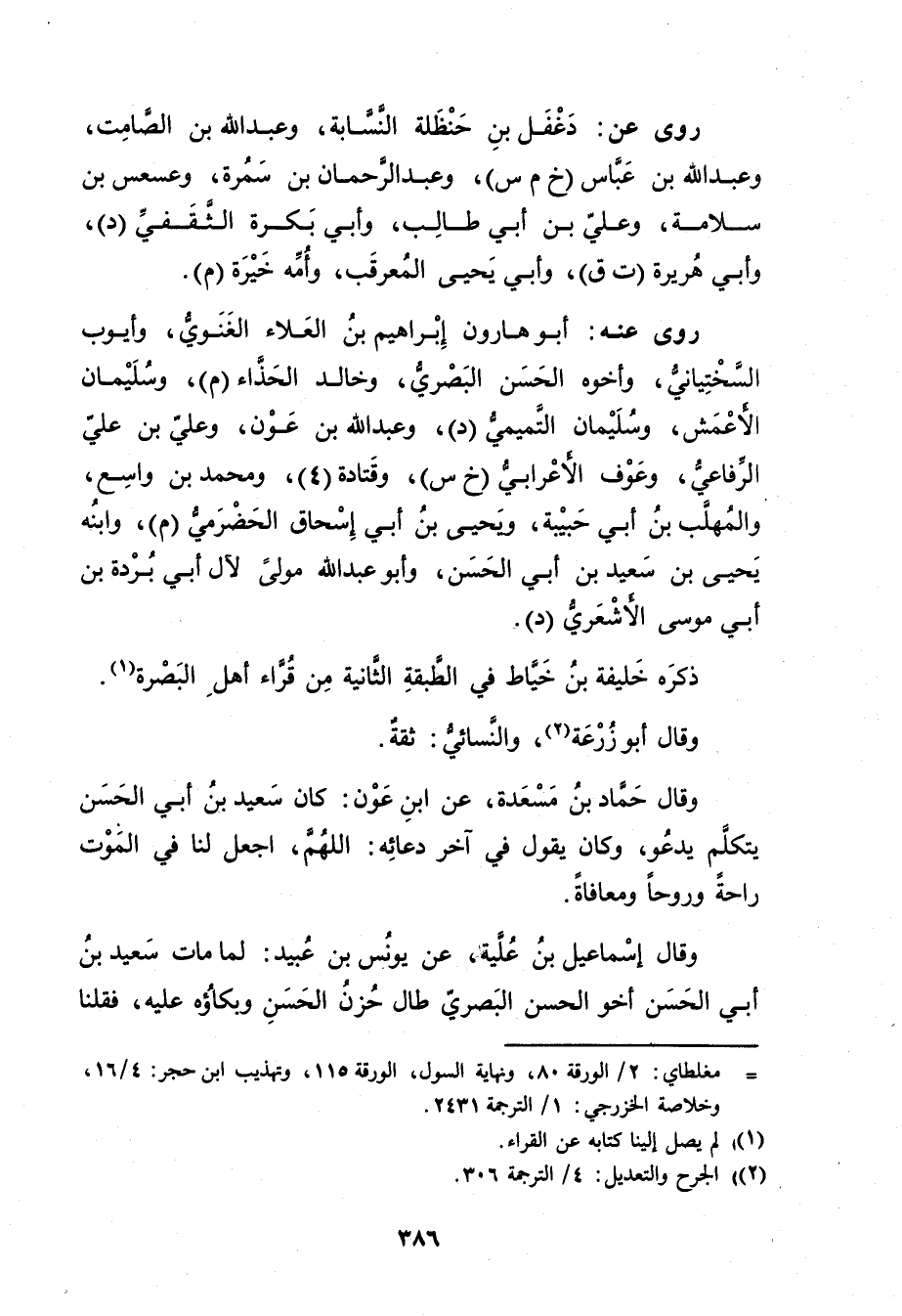 = مغلطاي: 2 / الورقة 80، ونهاية السول، الورقة 115، وتهذيب ابن حجر: 4 / 16، وخلاصة الخزرجي: 1 / الترجمة 2431.