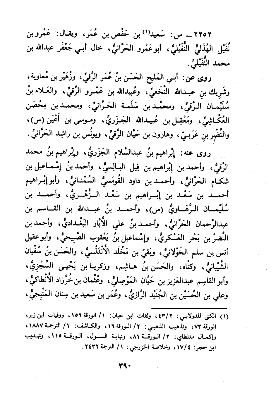 2252 - س: سَعِيد بن حَفْص بن عُمَر (1) ، ويُقال: عَمْرو بْن نفيل الهذلي النفيلي، أَبُو عَمْرو الْحَرَّانِيّ، خال أَبِي جَعْفَر عَبد اللَّهِ بْن مُحَمَّد النفيلي.