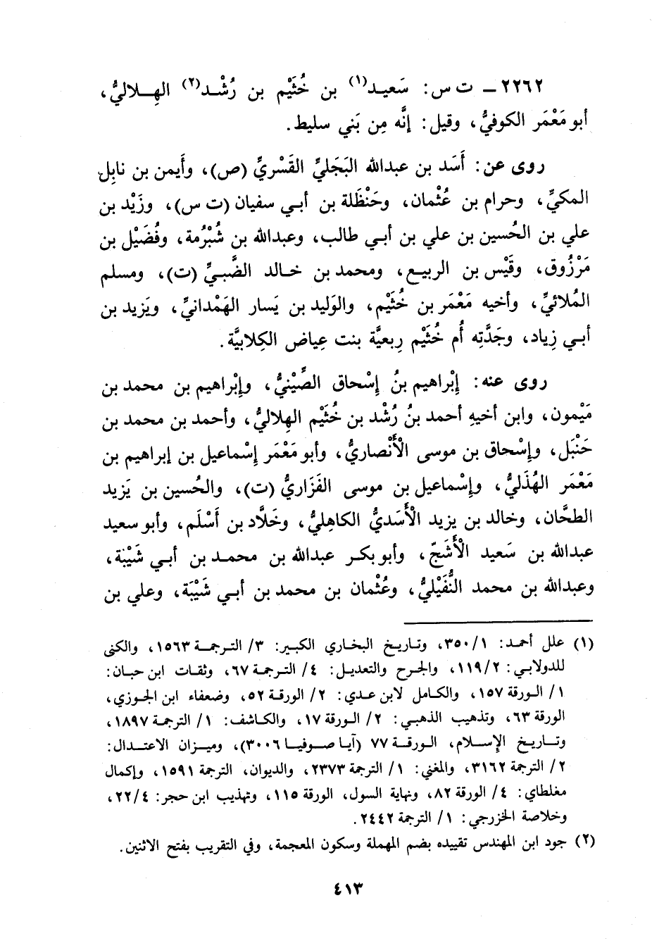 2262 - ت س: سَعِيد بن خُثَيْم (1) بن رشد (2) الهلالي، أَبُو مَعْمَر الْكُوفِيّ، وقيل: إنه من بني سليط.