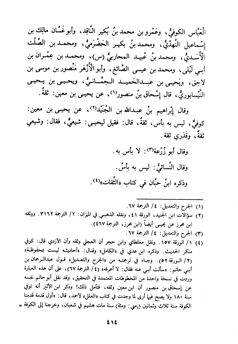 (2) سؤالات ابن الجنيد، الورقة 41، ونقله الذهبي في الميزان: 2 / الترجمة 3162. ووثقه ابن محرز عن يحيى أيضا (ابن محرز، الترجمة 467) .