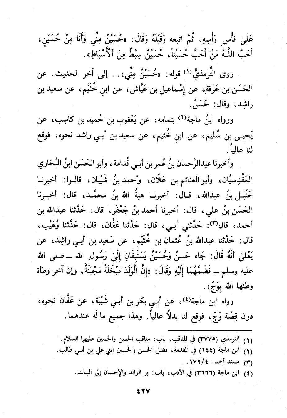 (2) ابن ماجة (144) في المقدمة، فضل الحسن والحسين ابني علي بن أَبي طالب.