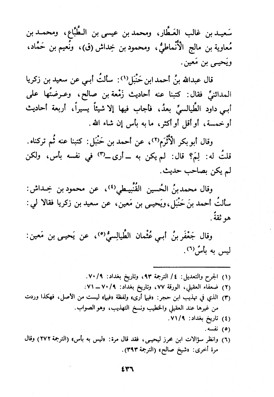 (6) وانظر سؤالات ابن محرز ليحيى، فقد قال مرة: ليس به بأس" (الترجمة 272) وَقَال مرة أخرى: شيخ صالح" (الترجمة 393) .