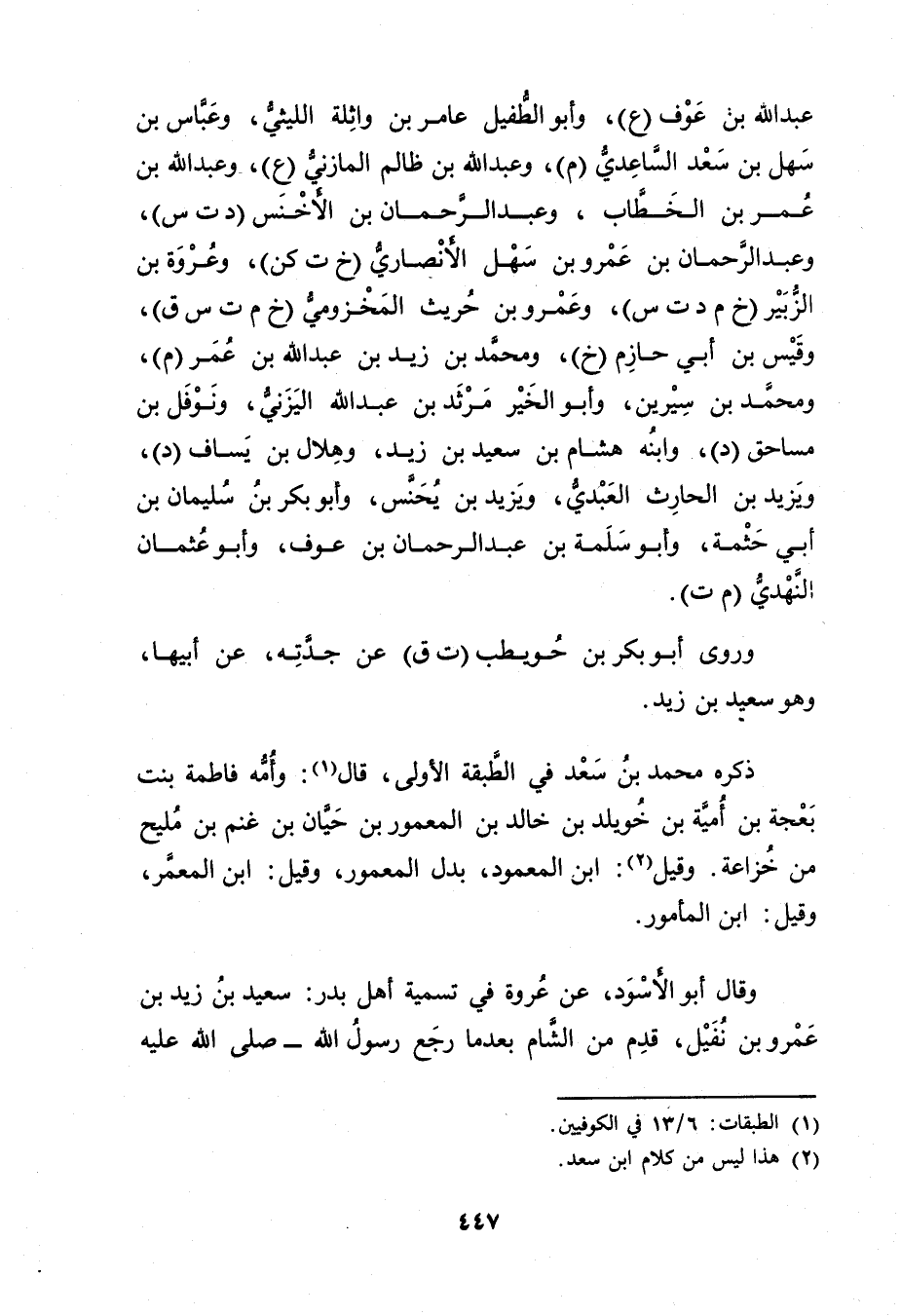 وَقَال أَبُو الأسود، عَنْ عُرْوَة فِي تسمية أهل بدر: سَعِيد بْن زيد بْن عَمْرو بْن نفيل، قدم من الشام بعدما رجع رَسُول اللَّهِ - صلى الله عليه
