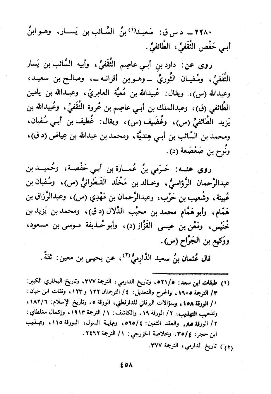 2280 - د س ق: سَعِيد بن السَّائِب بن يسار (1) ، وهُوَ ابْن أَبي حَفْص الثَّقَفِيّ، الطائفي.