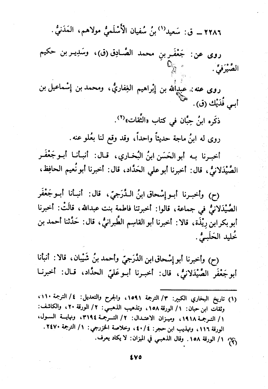 2286 - ق: سَعِيد بن سُفْيَان الأَسلميّ مولاهم (1) ، الْمَدَنِيّ.