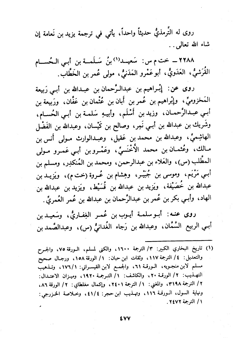 2288 - خت م س: سَعِيد بن سَلَمَة بن أَبي الحسام الْقُرَشِيّ (1) ، العدوي، أبو عَمْرو الْمَدَنِيّ، مولى عُمَر بْن الخطاب.