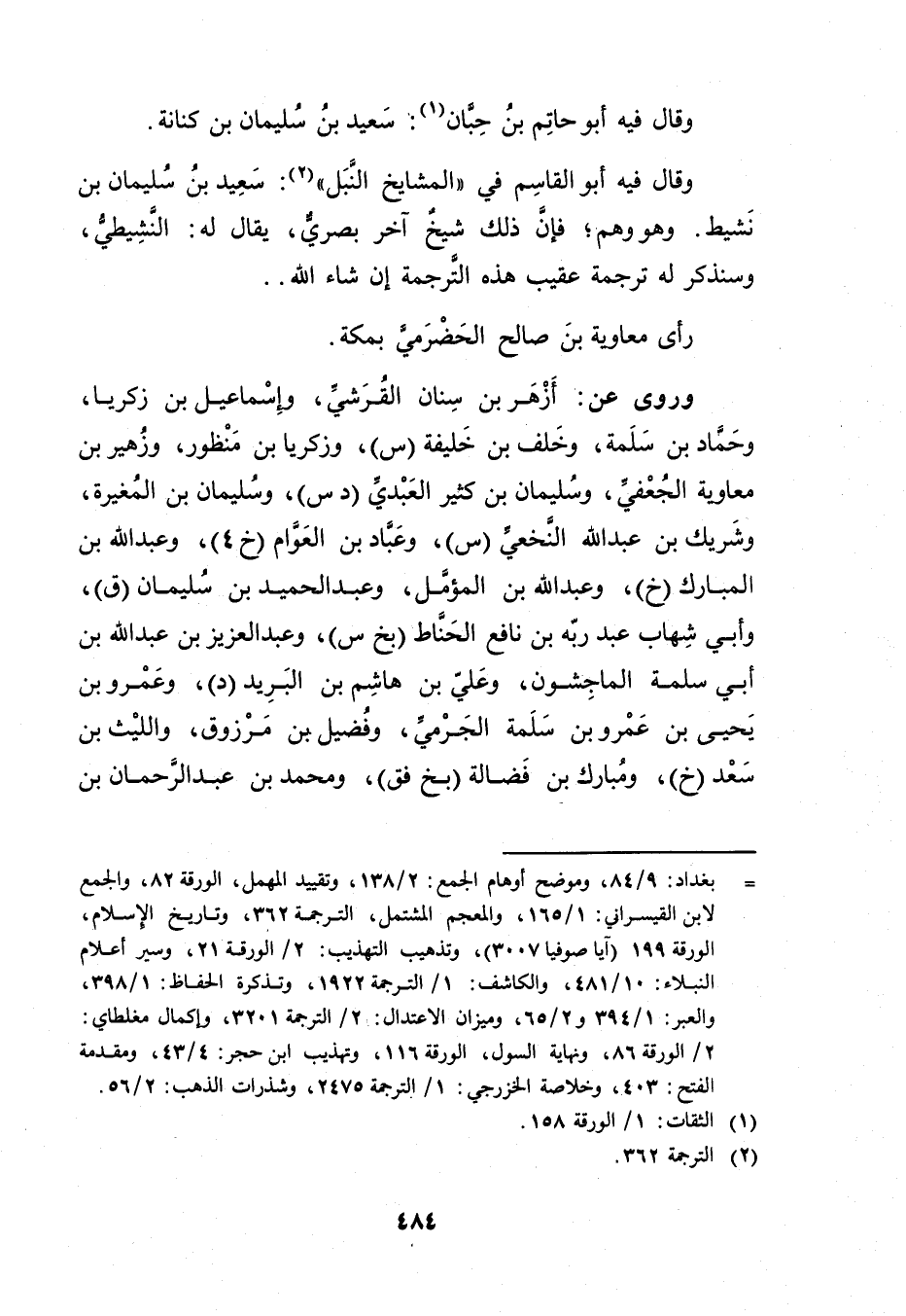 وَقَال فيه أَبُو حاتم بْن حبان (1) : سَعِيد بْن سُلَيْمان بْن كنانة.