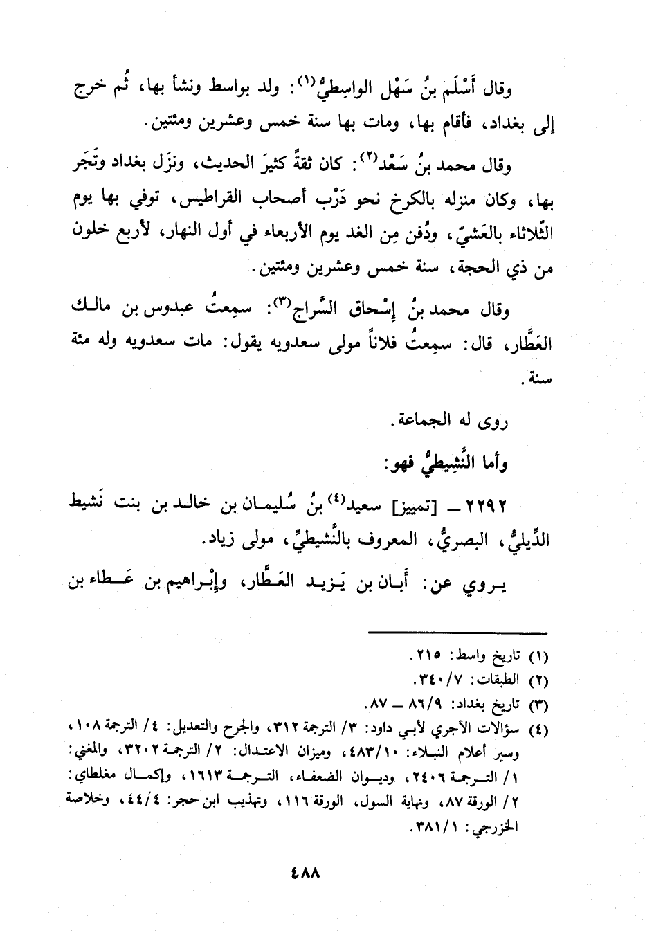 2292 - تمييز سَعِيد بن سُلَيْمان بن خالد بن بِنْت نشيط الديلي (4) ، البَصْرِيّ، المعروف بالنشيطي، مولى زِيَاد.
