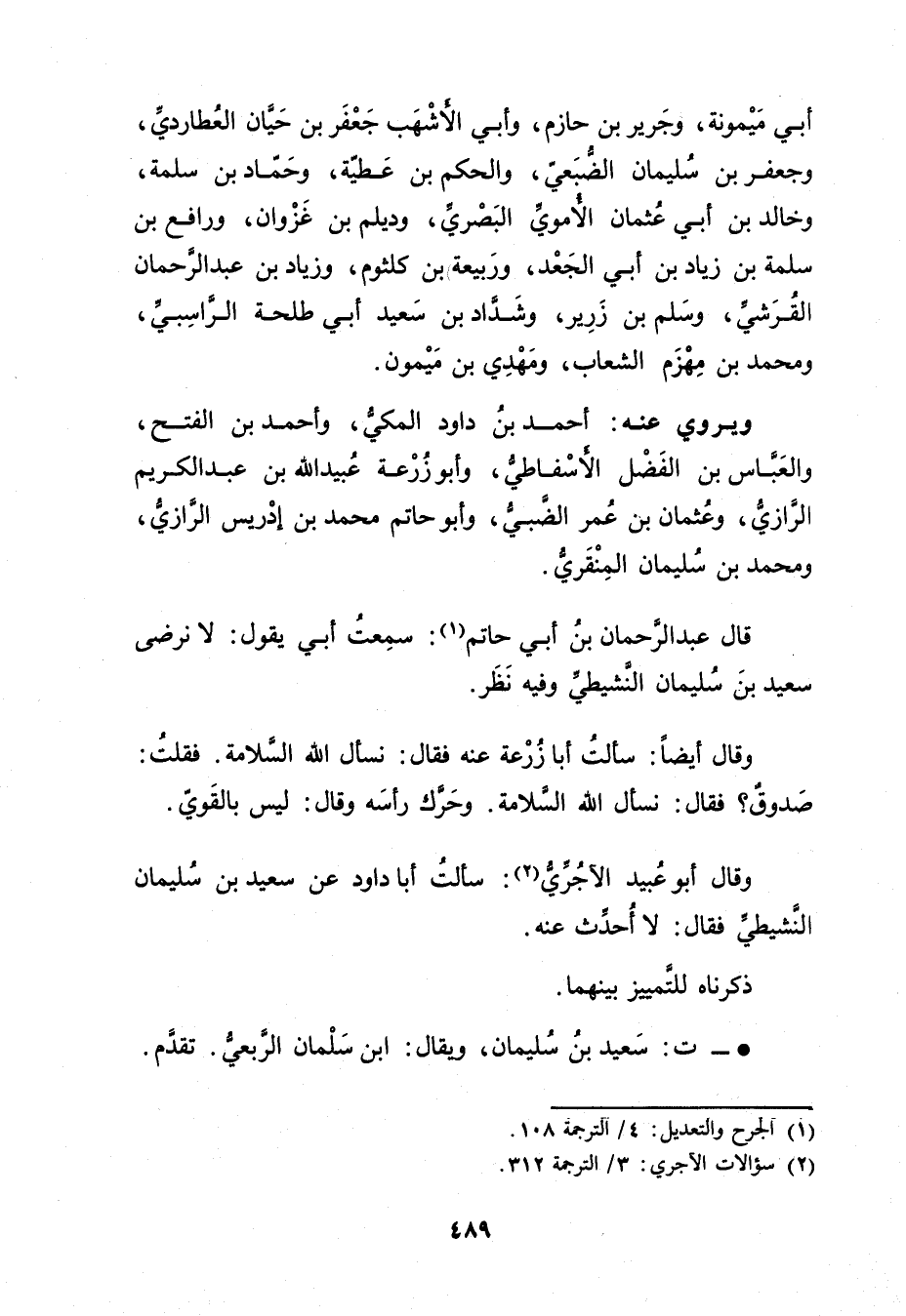 وَقَال أَبُو عُبَيد الأجري (3) : سألت أبا دَاوُد عَنْ سَعِيد بْن سُلَيْمان النشيطي فَقَالَ: لا أحدث عنه.