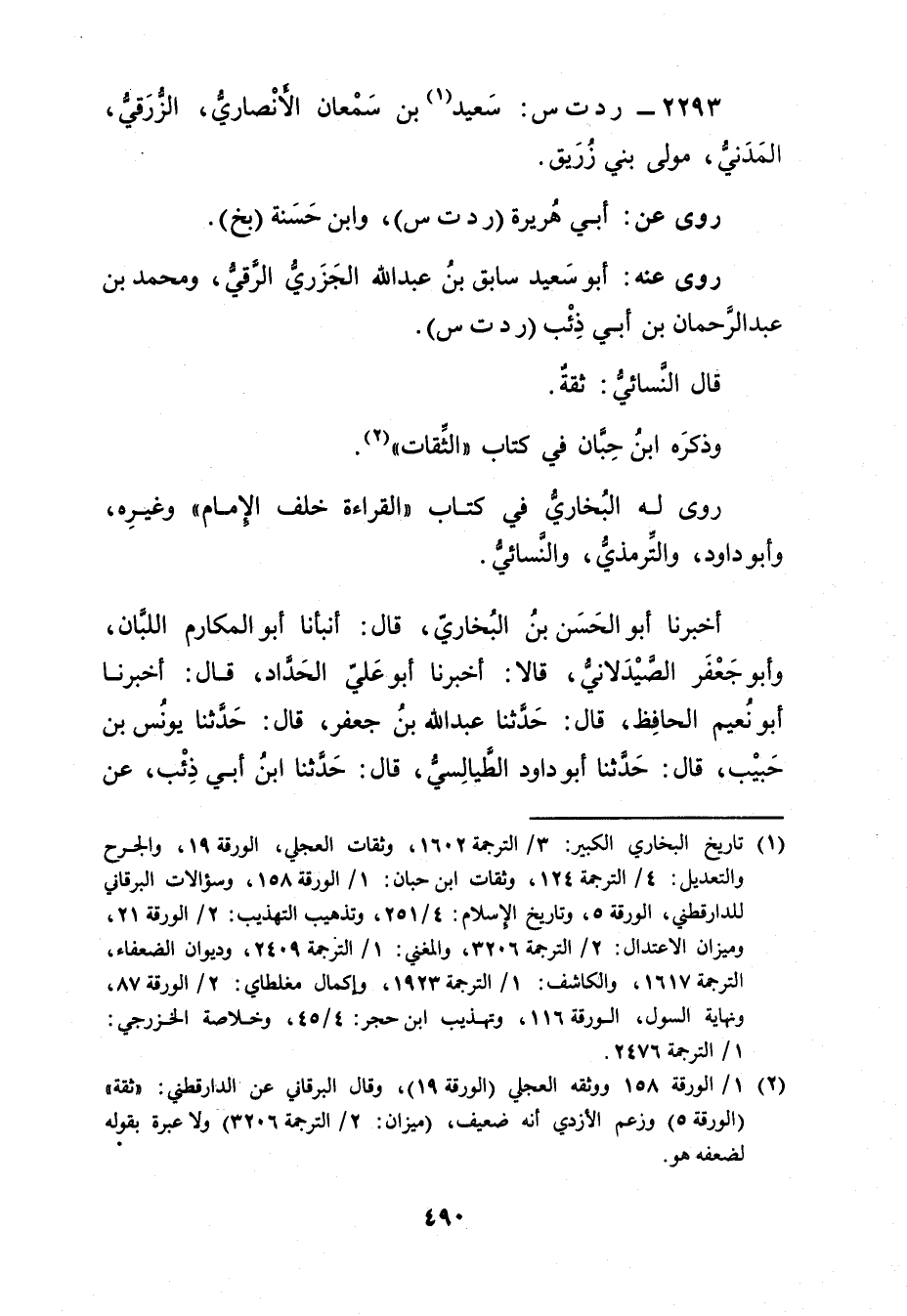 2293 - ر د ت س: سَعِيد بن سمعان الأَنْصارِيّ (1) ، الزرقي، الْمَدَنِيّ، مولى بني زريق.