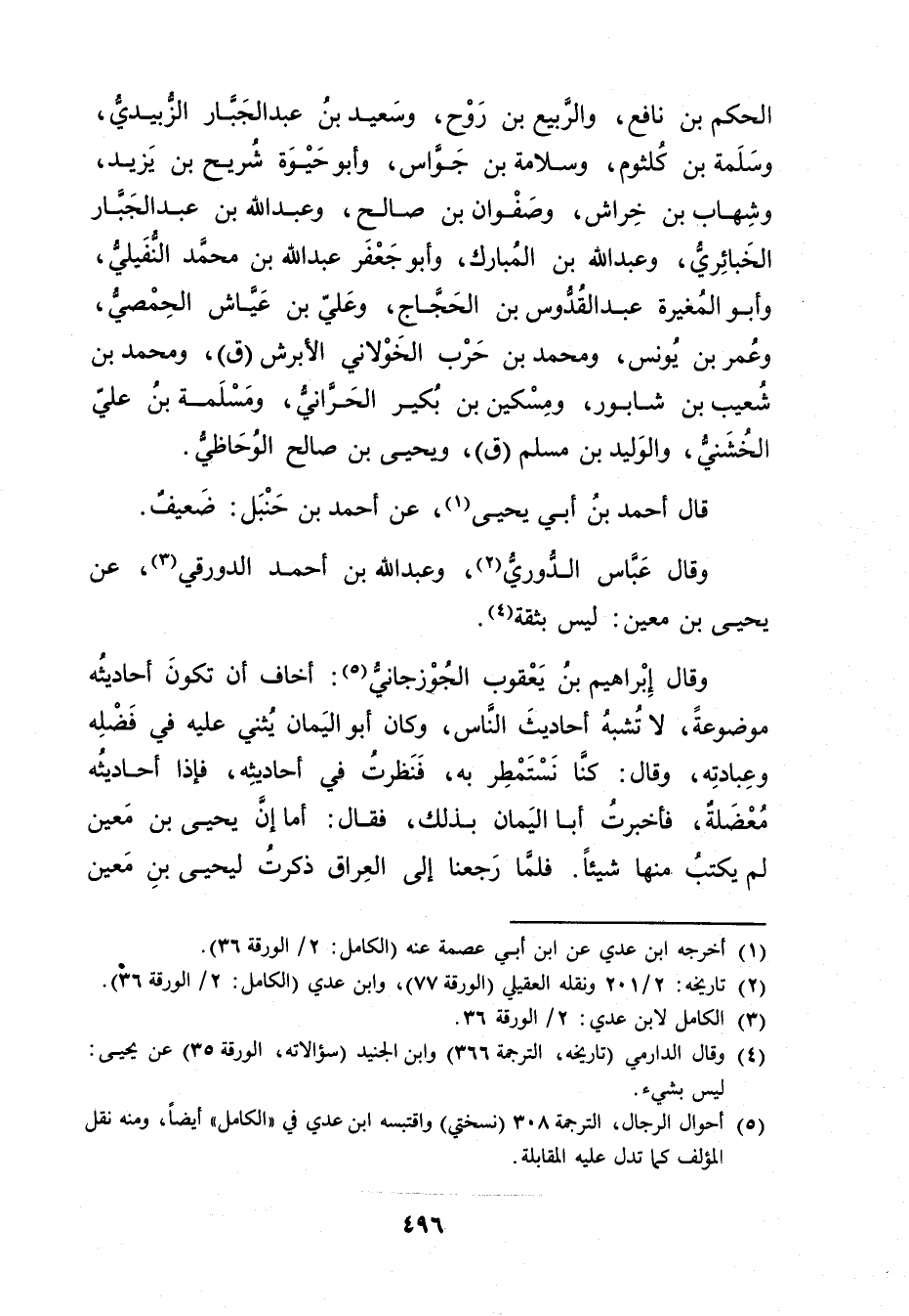 (5) أحوال الرجال، الترجمة 308 (نسختي) واقتبسه ابن عدي في "الكامل"أيضا، ومنه نقل المؤلف كما تدل عليه المقابلة.