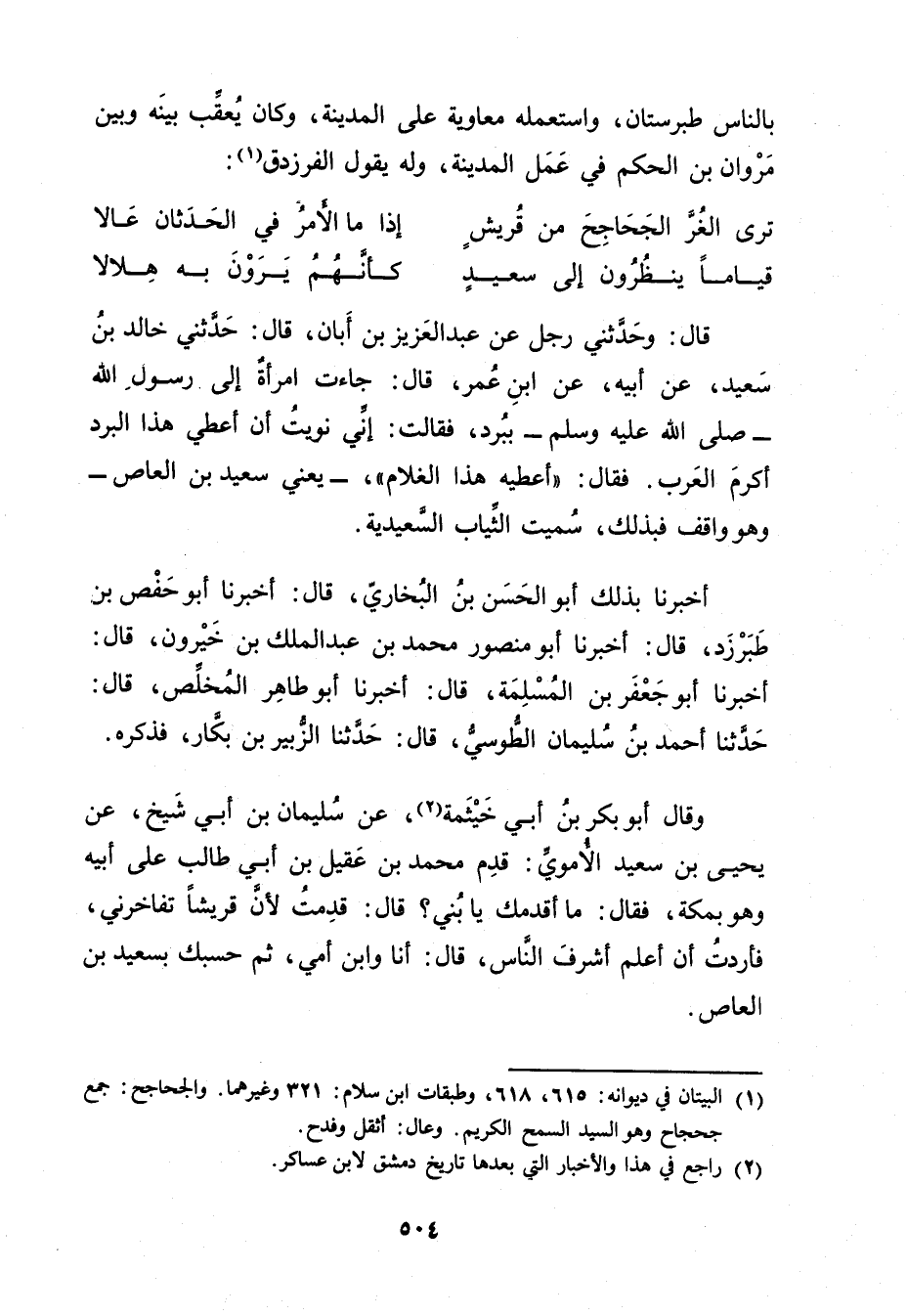 بالناس طبرستان، واستعمله معاوية على الْمَدِينَة، وكان يعقب بينه وبين مروان بْن الْحَكَمِ فِي عمل الْمَدِينَة، وله يَقُول الفرزدق (1) :