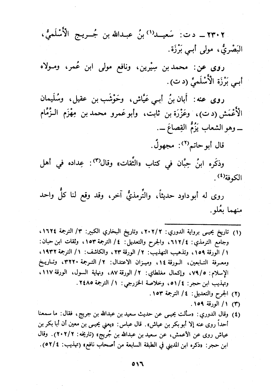 2302 - د ت: سَعِيد بن عَبد اللَّهِ بن جُرَيْج الأَسلميّ (1) ، البَصْرِيّ، مولى أَبِي برزة.