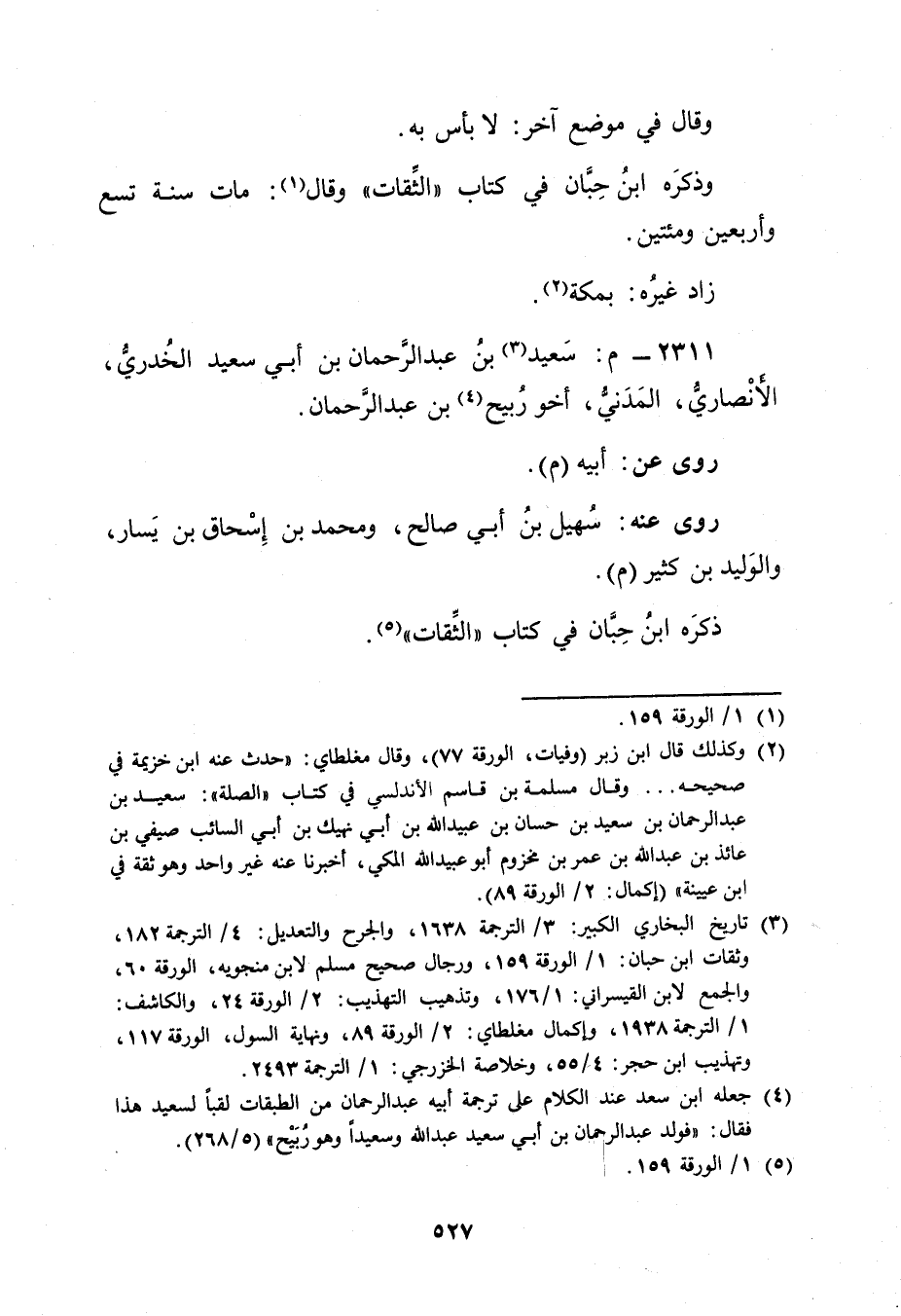 (4) جعله ابن سعد عند الكلام على ترجمة ابيه عبد الرحمن من الطبقات لقبا لسَعِيد هذا فقال: فولد عبد الرحمن بن أَبي سَعِيد عَبد الله وسَعِيدا وهو ربيح" (5 / 268) .
