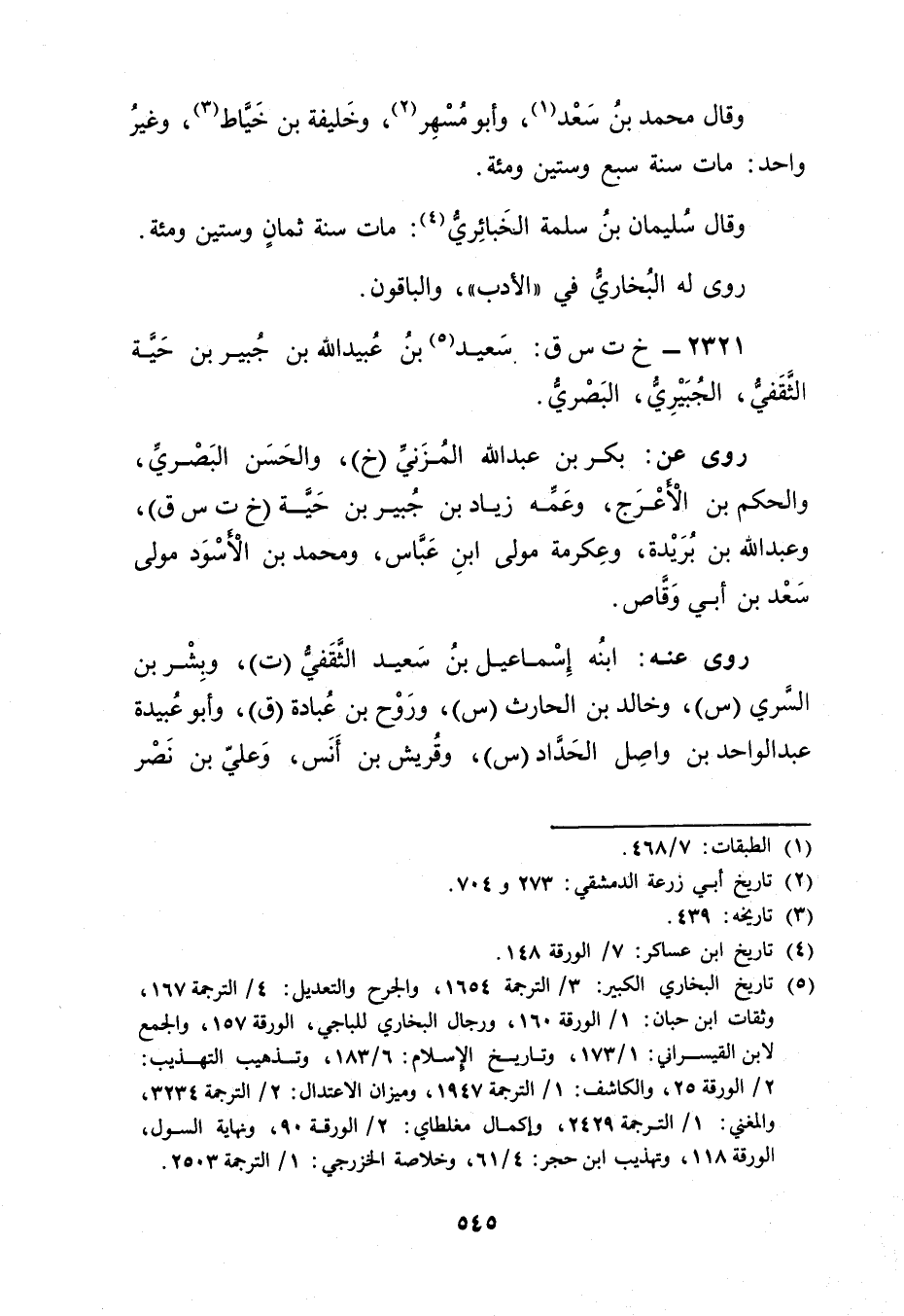 2321 - خ ت س ق: سَعِيد بن عُبَيد اللَّه بن جبير بن حية الثقفي (5) ، الجبيري، البَصْرِيّ.