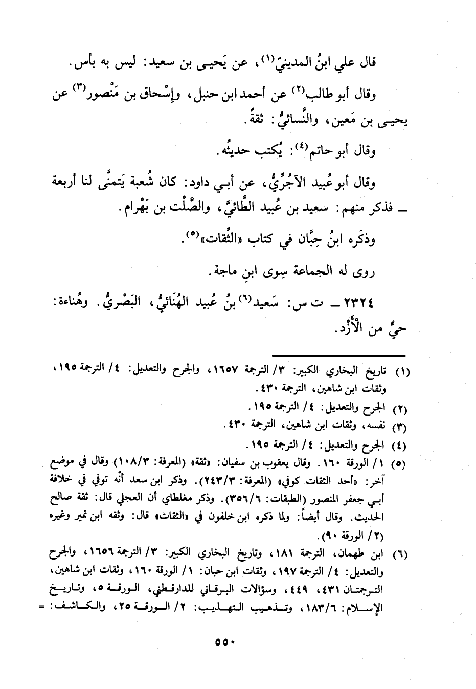 2324 - ت س: سَعِيد بن عُبَيد الهنائي (6) ، البَصْرِيّ. وهناءة: حي من الازد.