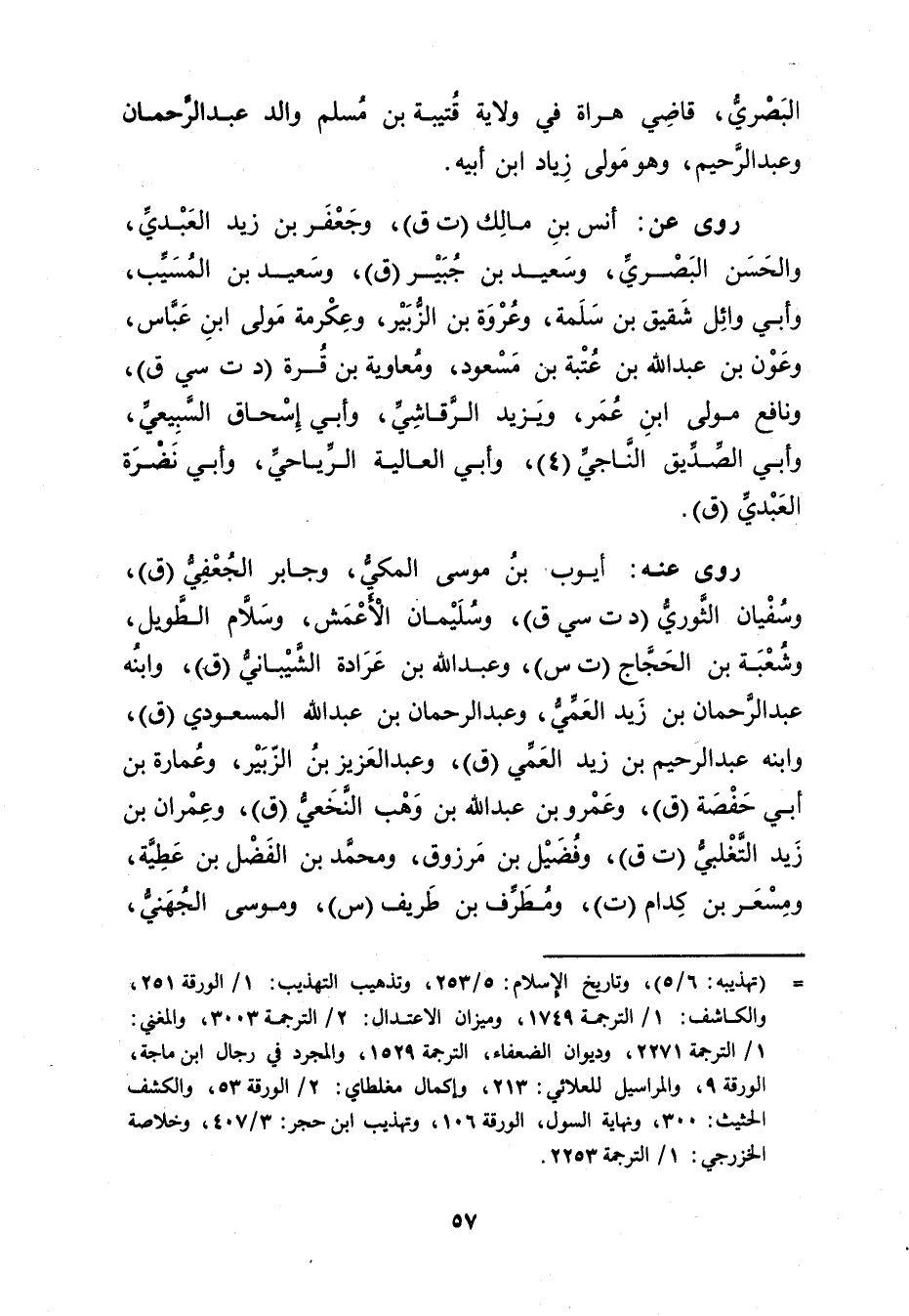 = (تهذيبه: 6 / 5) ، وتاريخ الاسلام: 5 / 253، وتذهيب التهذيب: 1 / الورقة 251، والكاشف: 1 / الترجمة 1749، وميزان الاعتدال: 2 / الترجمة 3003، والمغني: 1 / الترجمة 2271، وديوان الضعفاء، الترجمة 1529، والمجرد في رجال ابن ماجة، الورقة 9، والمراسيل للعلائي: 213، وإكمال مغلطاي: 2 / الورقة 53، والكشف الحثيث: 300، ونهاية السول، الورقة 106، وتهذيب ابن حجر: 3 / 407، وخلاصة الخزرجي: 1 / الترجمة 2253.