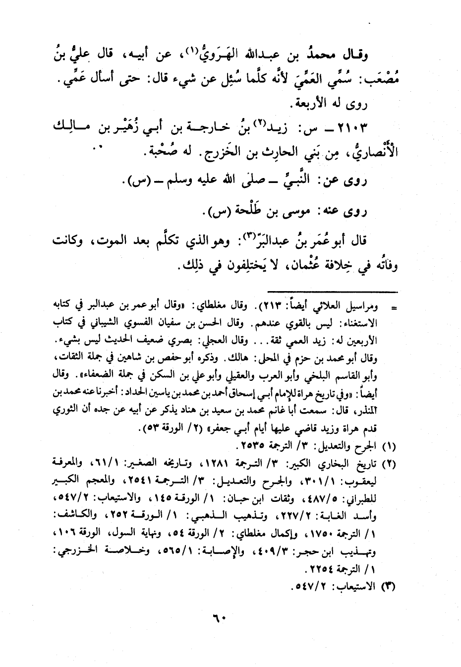 (2) تاريخ البخاري الكبير: 3 / الترجمة 1281، وتاريخه الصغير: 1 / 61، والمعرفة ليعقوب: 1 / 301، والجرح والتعديل: 3 / الترجمة 2541، والمعجم الكبير للطبراني: 5 / 487، وثقات ابن حبان: 1 / الورقة 145، والاستيعاب: 2 / 547، وأسد الغابة: 2 / 227، وتذهيب الذهبي: 1 / الورقة 252، والكاشف: 1 / الترجمة 1750، وإكمال مغلطاي: 2 / الورقة 54، ونهاية السول، الورقة 106، وتهذيب ابن حجر: 3 / 409، والاصابة: 1 / 565، وخلاصة الخزرجي: 1 / الترجمة 2254.