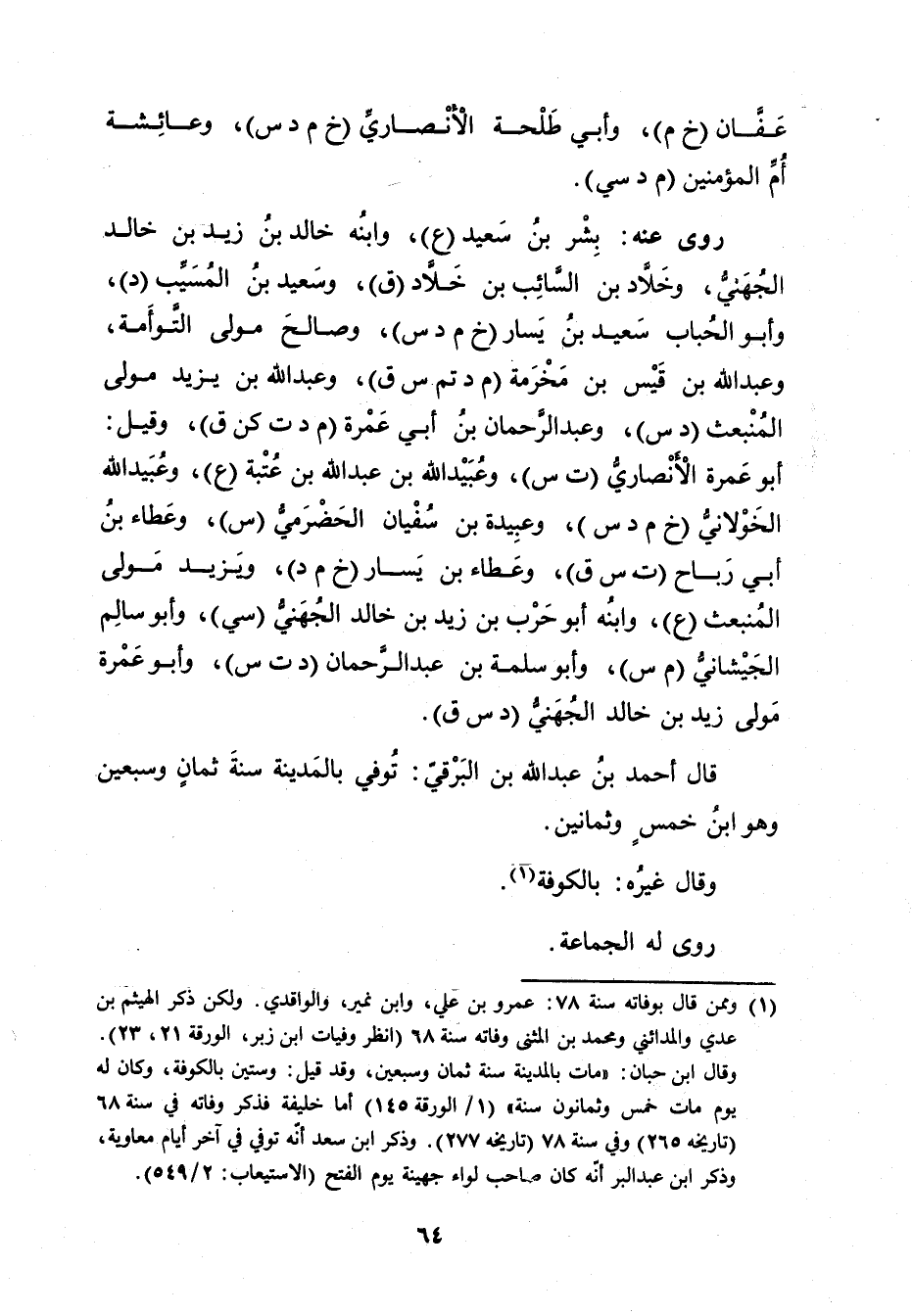 (1) وممن قال بوفاته سنة 78: عَمْرو بن علي، وابن نمير، والواقدي.