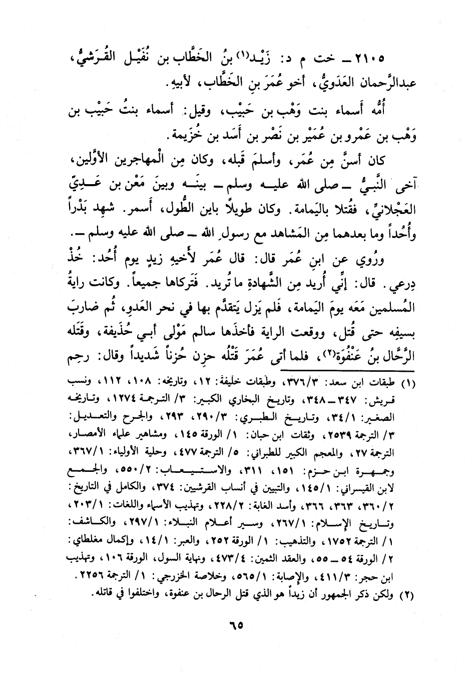 2105 - خت م د: زَيْد بن الخطاب بن نفيل القرشي (1) ، عَبْد الرَّحْمَنِ العدوي، أخو عُمَر بْن الخطاب، لأبيه.