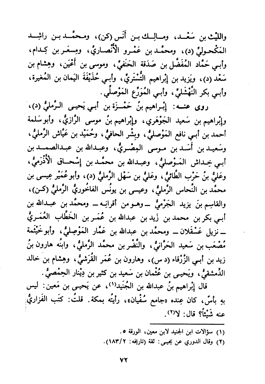 (1) سؤالات ابن الجنيد لابن مَعِين، الورقة 5.
