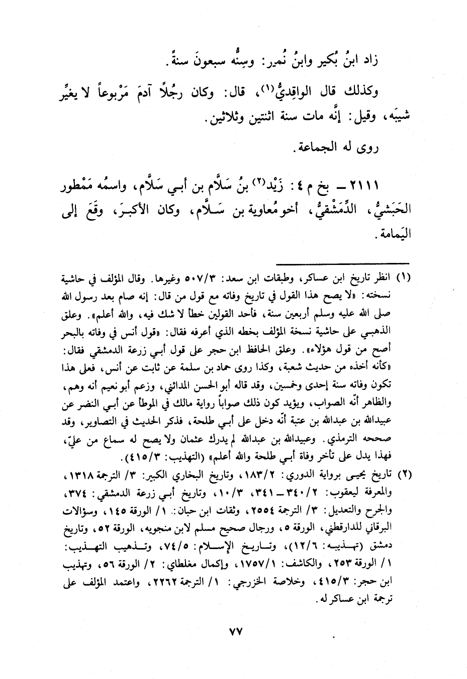 2111 - بخ م 4: زَيْد بن سَلام بن أَبي سَلام (2) ، واسمه ممطور الحبشي، الدِّمَشْقِيّ، أخو معاوية بْن سَلام، وكان الأكبر، وقع إلى اليمامة.