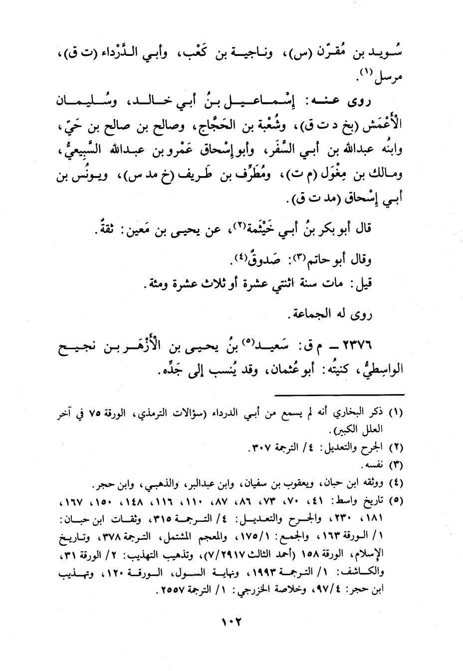 2376 - م ق: سَعِيد بن يحيى بن الازهر بن نجيع الواسطي (5) ، كنيته: أَبُو عُثْمَان، وقد ينسب إلى جده.