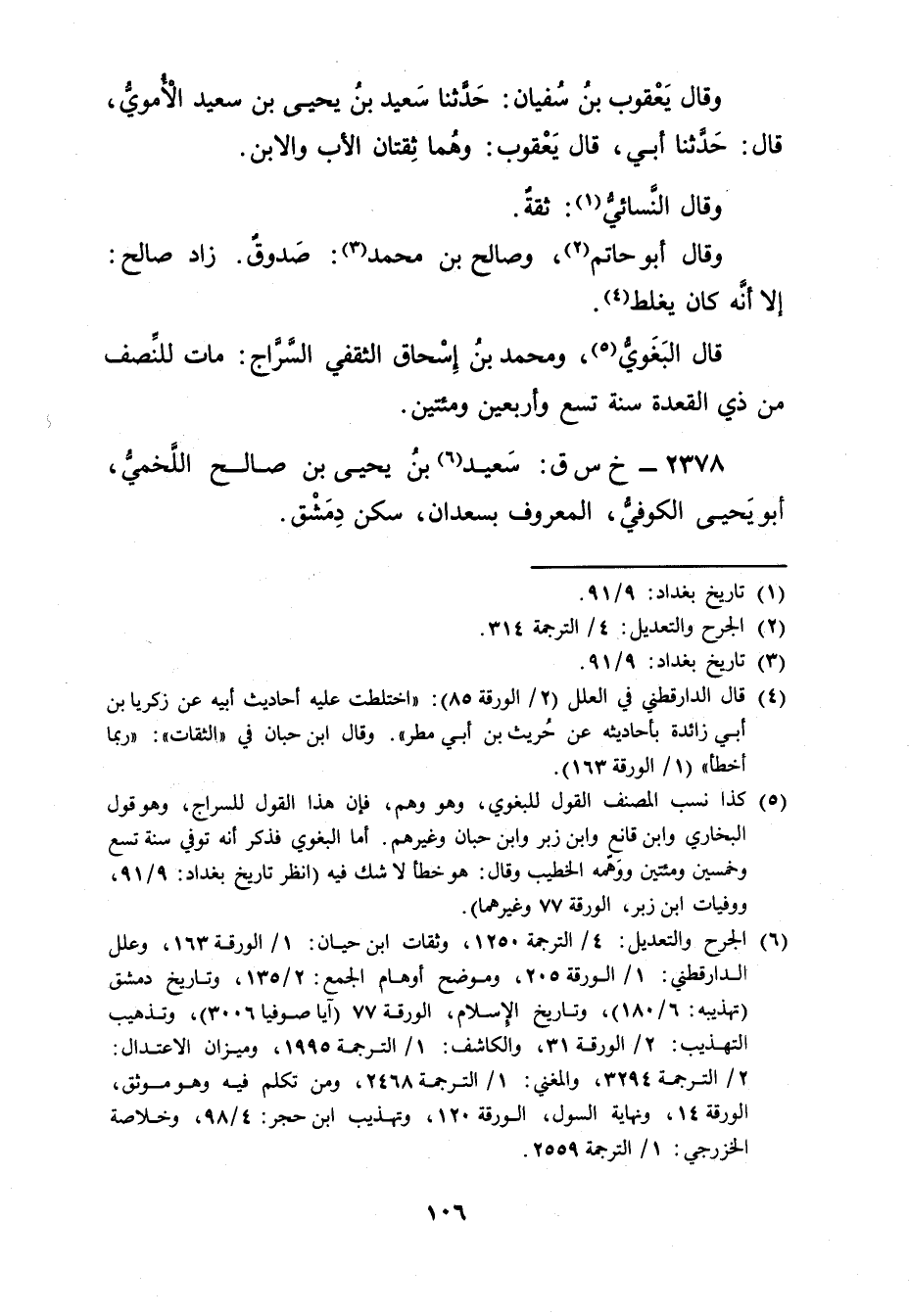 2378 - خ س ق: سَعِيد بن يحيى بن صالح اللخمي (6) ، أبويحيى الكوفي، المعروف بسعدان، سكن دمشق.