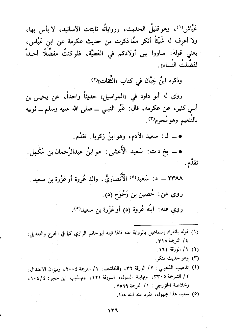 (4) تذهيب الذهبي: 2 / الورقة 32، والكاشف: 1 / الترجمة 2004، وميزان الاعتدال: 2 / الترجمة 3305، ونهاية السول، الورقة 121، وتهذيب ابن حجر: 4 / 104، وخلاصة الخزرجي: 1 / الترجمة 2569.