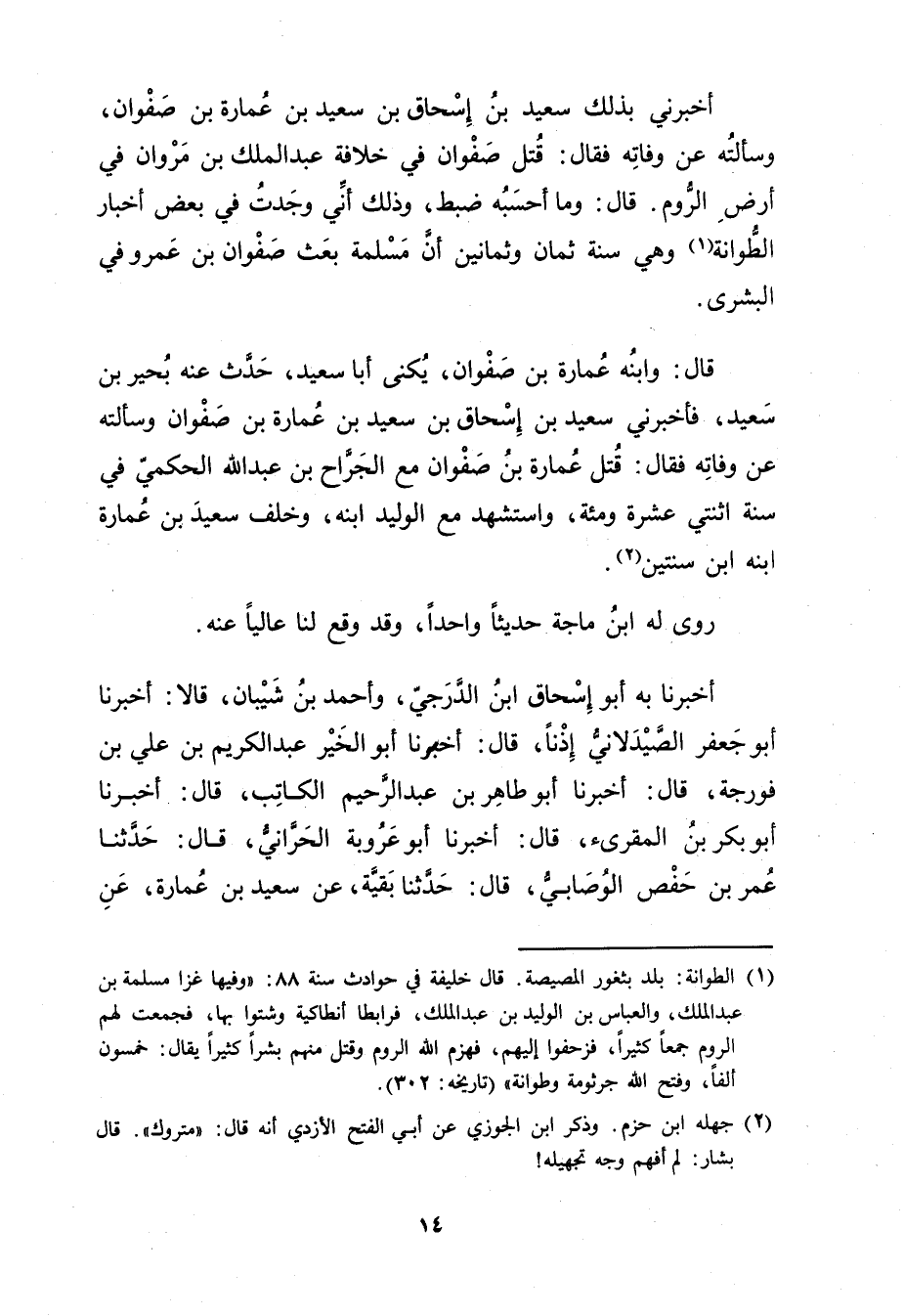 (2) جهلة ابن حزم. وذكر ابن الجوزي عَن أبي الفتح الأزدي أنه قال: متروك". قال بشار: لم أفهم وجه تجهيله!
