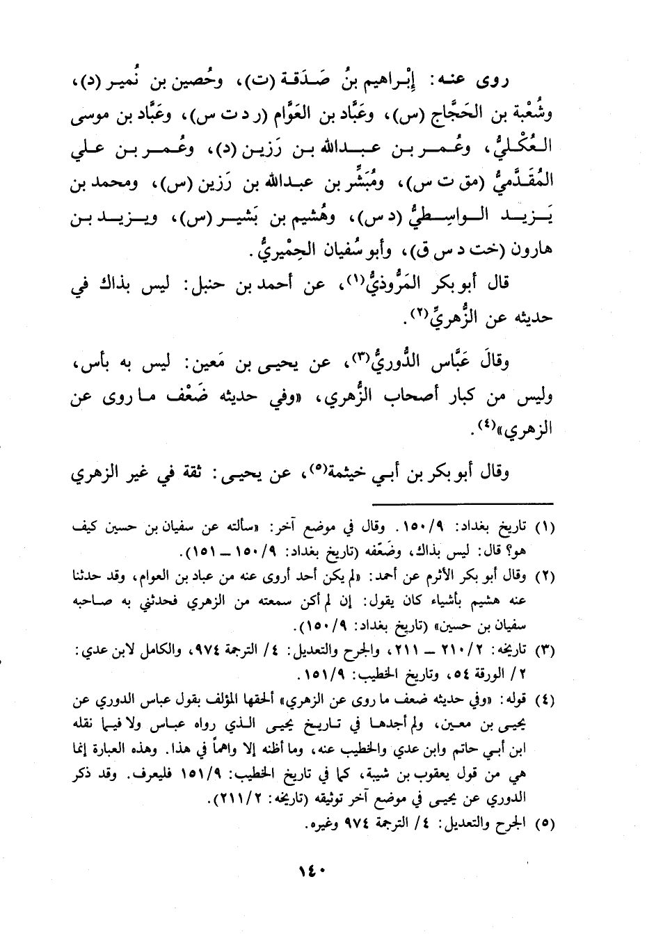 (4) قوله: وفي حديثه ضعف ما روى عن الزُّهْرِيّ"ألحقها المؤلف بقول عَبَّاس الدوري عَنْ يحيى بْن مَعِين، ولم أجدها في تاريخ يحيى الذي رواه عباس ولا فيما نقله ابن أَبي حاتم وابن عدي والخطيب عنه، وما أظنه إلا واهما في هذا. وهذه العبارة إنما هي من قول يعقوب بن شَيْبَة، كما في تاريخ الخطيب: 9 / 151 فليعرف. وقد ذكر الدوري عن يحيى في موضع آخر توثيقه (تاريخه: 2 / 211) .
