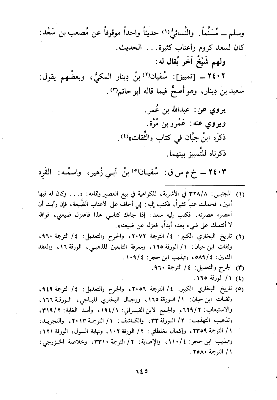 2402 - تمييز: سفيان بن دينار المكي (2) ، وبعضهم يَقُولُ: سَعِيد بْن دينار، وهو أصح فيما قاله أَبُو حاتم (3) .