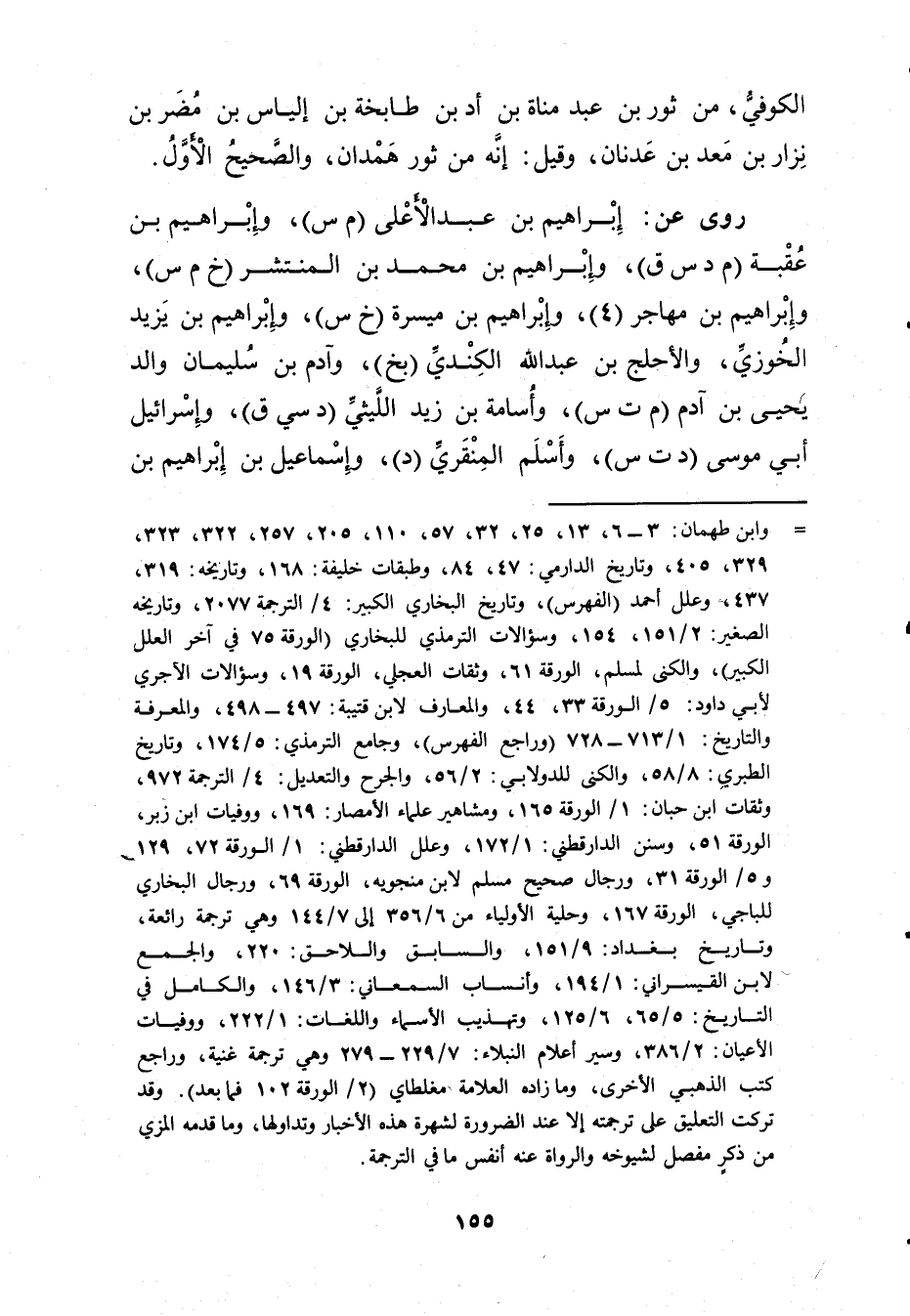 = وابن طهمان: 3 - 6، 13، 25، 32، 57، 110، 205، 257، 322، 323، 329، 405، وتاريخ الدارمي: 47، 84، وطبقات خليفة: 168، وتاريخه: 319، 437، وعلل أحمد (الفهرس) ، وتاريخ البخاري الكبير: 4 / الترجمة 2077، وتاريخه الصغير: 2 / 151، 154، وسؤالات التِّرْمِذِيّ للبخاري (الورقة 75 في آخر العلل الكبير) ، والكنى لمسلم، الورقة 61، وثقات العجلي، الورقة 19، وسؤالات الآجُرِّيّ لابي داود: 5 / الورقة 33، 44، والمعارف لابن قتيبة: 497 - 498، والمعرفة والتاريخ: 1 / 713 - 728 (وراجع الفهرس) ، وجامع التِّرْمِذِيّ: 5 / 174، وتاريخ الطبري: 8 / 58، والكنى للدولابي: 2 / 56، والجرح والتعديل: 4 / الترجمة 972، وثقات ابن حبان: 1 / الورقة 165، ومشاهير علماء الامصار: 169، ووفيات ابن زبر، الورقة 51، وسنن الدَّارَقُطنِيّ: 1 / 172، وعلل الدَّارَقُطنِيّ: 1 / الورقة 72، 129 و5 / الورقة 31، ورجال صحيح مسلم لابن منجويه، الورقة 69، ورجال البخاري للباجي، الورقة 167، وحلية الاولياء من 6 / 356 إلى 7 / 144 وهي ترجمة رائعة، وتاريخ بغداد: 9 / 151، والسابق واللاحق: 220، والجمع لابن القيسراني: 1 / 194، وأنساب السمعاني: 3 / 146، والكامل في التاريخ: 5 / 65، 6 / 125، وتهذيب الأَسماء واللغات: 1 / 222، ووفيات الاعيان: 2 / 386، وسير أعلام النبلاء: 7 / 229 - 279 وهي ترجمة غنية، وراجع كتب الذهبي الاخرى، وما زاده العلامة مغلطاي (2 / الورقة 102 فما بعد) . وقد تركت التعليق على ترجمته إلا عند الضرورة لشهرة هذه الاخبار وتداولها، وما قدمه المزي من ذكر مفصل لشيوخه والرواة عنه أنفس ما في الترجمة.
