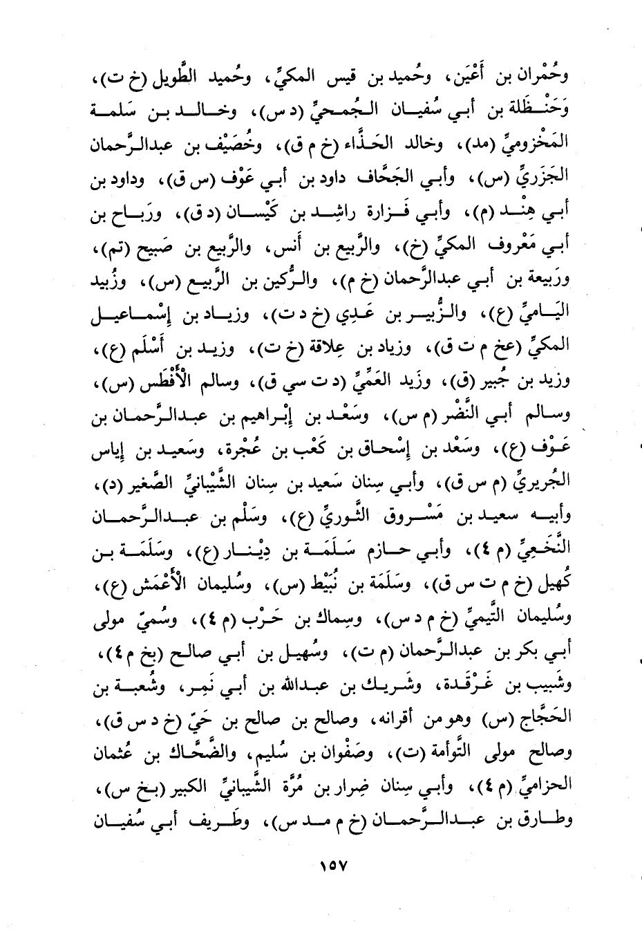 وحمران بْن أعين، وحميد بْن قيس المكي، وحميد الطويل (خ ت) ، وحنظلة بْن أَبي سفيان الجمحي (دس) ، وخالد بْن سلمة المخزومي (مد) ، وخالد الحذاء (خ م ق) ، وخصيف بْن عَبْدِ الرَّحْمَنِ الجزري (س) ، وأبي الجحاف داود بْن أَبي عوف (س ق) ، وداود بْن أَبي هند (م) ، وأبي فزارة راشد بن كيسان (دق) ، ورباح بْن أَبي معروف المكي (خ) ، والربيع بْن أنس، والربيع بْن صبيح (تم) ، وربيعة بْن أَبي عَبْد الرَّحْمَنِ (خ م) ، والركين بْن الربيع (س) ، وزبيد اليامي (ع) ، والزبير بْن عدي (خ د ت) ، وزياد بْن إِسْمَاعِيلَ المكي (عخ م ت ق) ، وزياد بْن علاقة (خ ت) ، وزيد بْن اسلم (ع) ، وزيد بْن جبير (ق) ، وزيد العمي (د ت سي ق) ، وسالم الأفطس (س) ، وسالم أبي النضر (م س) ، وسعد بْن إِبْرَاهِيم بْن عَبْد الرَّحْمَنِ بْن عوف (ع) ، وسعد بْن إسحاق بْن كعب بْن عجرة، وسَعِيد بْن إياس الجريري (م س ق) ، وأبي سنان سَعِيد بْن سنان الشيباني الصغير (د) ، وأبيه سَعِيد بْن مسروق الثوري (ع) ، وسلم بْن عَبْد الرَّحْمَنِ النخعي (م 4) ، وأبي حازم سلمة بْن دينار (ع) ، وسلمة بْن كهيل (خ م ت س ق) ، وسلمة بْن نبيط (س) ، وسُلَيْمان الأعمش (ع) ، وسُلَيْمان التَّيْمِيّ (خ م د س) ، وسماك بْن حرب (م 4) ، وسمي مولى أبي بكر بْن عَبْد الرحمن (م ت) ، وسهيل بْن أَبي صالح (بخ م 4) ، وشبيب بْن غرقدة، وشَرِيك بْن عَبد اللَّهِ بْن أَبي نمر، وشعبة بْن الحجاج (س) ، وهو من أقرانه، وصالح بْن صالح بْن حي (خ د س ق) وصالح مولى التوأمة (ت) ، وصفوان بْن سليم، والضحاك بْن عُثْمَانَ الحزامي (م 4) ، وأبي سنان ضرار بْن مرة الشيباني الكبير (بخ س) ، وطارق بْن عَبْد الرَّحْمَنِ (خ م مد س) ، وطريف أبي سفيان.