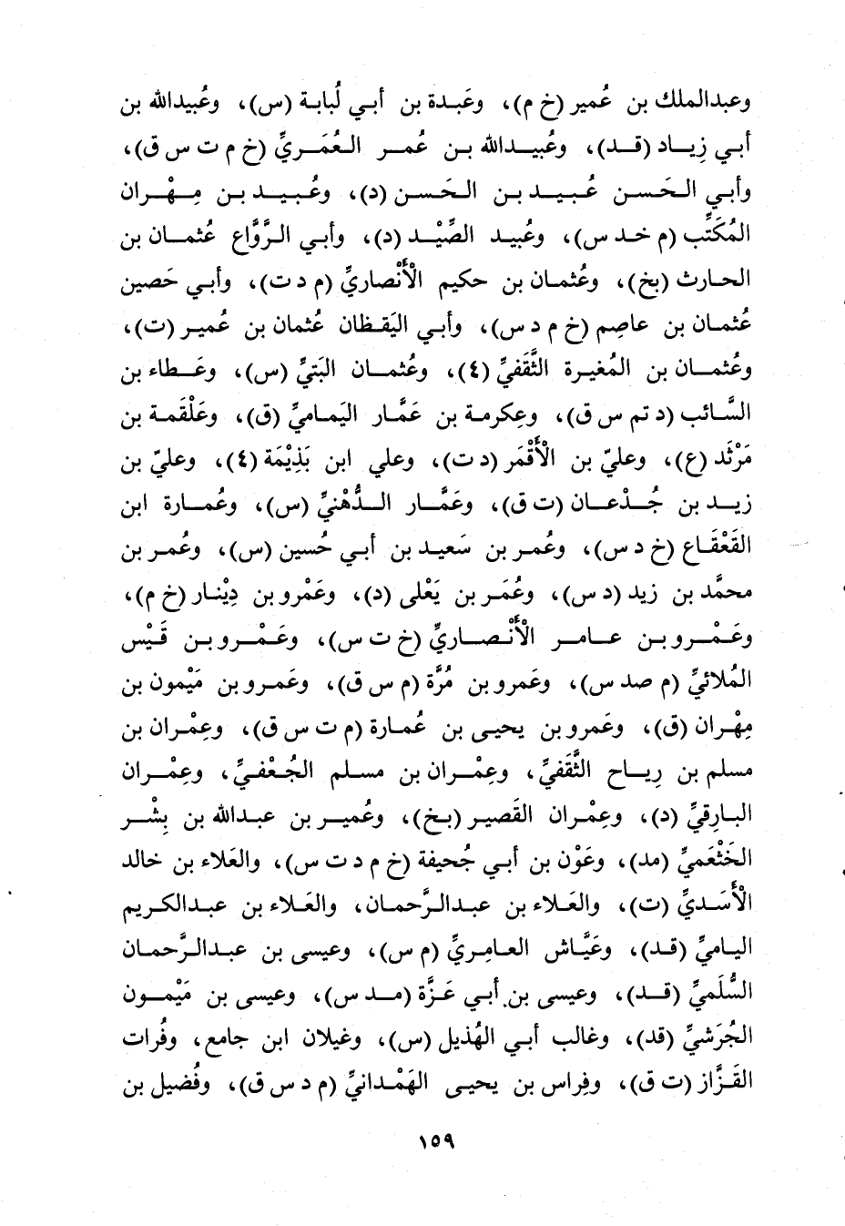 وعبد الملك بْن عُمَير (خ م) ، وعبدة بْن أَبي لبابة (س) ، وعُبَيد الله بْن أَبي زياد (قد) ، وعُبَيد اللَّه بْن عُمَر العُمَري (خ م ت س ق) ، وأبي الْحَسَن عُبَيد بْن الْحَسَن (د) ، وعُبَيد بْن مهران المكتب (م خد س) ، وعُبَيد الصيد (د) ، وأبي الرواع عُثْمَان بْن الحارث (بخ) ، وعثمان بْن حكيم الأَنْصارِيّ (م د ت) ، وأبي حصين عُثْمَان بْن عاصم (خ م د س) ، وأبي اليقظان عثمان بْن عُمَير (ت) ، وعثمان بْن المغيرة الثقفي (4) ، وعثمان البتي (س) ، وعطاء بْن السائب (د تم س ق) ، وعكرمة بْن عمار اليمامي (ق) ، وعلقمة بْن مرثد (ع) ، وعلي بْن الأقمر (د ت) ، وعلي بْن بذيمة (4) ، وعلي بْن زيد بْن جدعان (ت ق) ، وعمار الدهني (س) ، وعمارة ابن القعقاع (خ د س) ، وعُمَر بْن سَعِيد بْن أَبي حسين (س) ، وعُمَر بْن مُحَمَّد بْن زيد (د س) ، وعُمَر بْن يَعْلَى (د) ، وعَمْرو بْن دينار (خ م) ، وعُمَر وبن عامر الأَنْصارِيّ (خ ت س) ، وعَمْرو بْن قيس الملائي (م صد س) ، وعَمْرو بْن مرة (م س ق) ، وعَمْرو بْن ميمون بْن مهران (ق) ، وعَمْرو بْن يَحْيَى بْن عمارة (م ت س ق) ، وعِمْران بْن مسلم بْن رياح الثقفي، وعِمْران بْن مسلم الجعفي، وعِمْران البارقي (د) ، وعِمْران القصير (بخ) ، وعمير بْن عَبد اللَّه بْن بشر الخثعمي (مد) ، وعون بْن أَبي جحيفة (خ م د ت س) ، والعلاء بْن خالد الأسدي (ت) ، والعلاء بن عبد الرحمن، والعلاء بْن عبد الكريم اليامي (قد) ، وعياش العامري (م س) ، وعيسى بْن عَبْد الرحمن السلمي (قد) ، وعيسى بْن أَبي عزة (مد س) ، وعيسى بْن ميمون الجرشي (قد) ، وغالب أبي الهذيل (س) ، وغيلان ابن جامع، وفرات القزاز (ت ق) ، وفراس بْن يَحْيَى الهمداني (م د س ق) ، وفضيل بْن