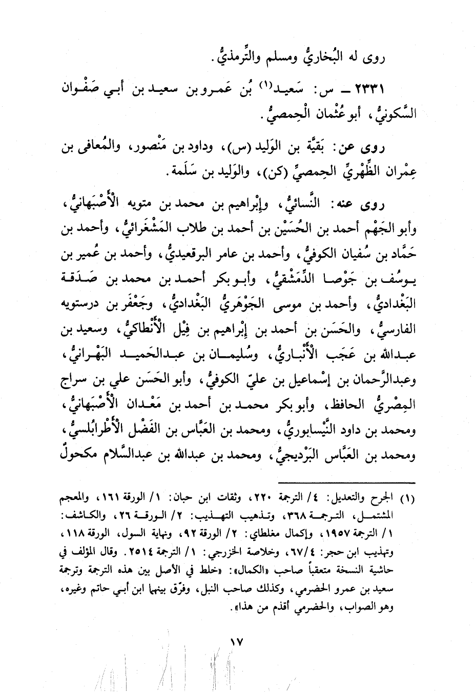 2331 - س: سَعِيد بن عَمْرو بن سَعِيد بن أَبي صفوان السكوني (1) ، أَبُو عُثْمَان الحمصي