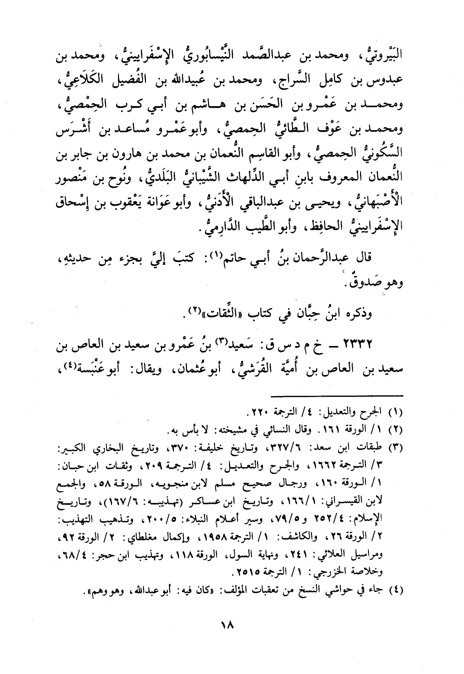 2332 - خ م د س ق: سَعِيد بْن عَمْرو بْن سَعِيد بن العاص بن سَعِيد بن العاص بن أمية القرشي (3) ، أَبُو عثمان، ويُقال: أبو عنبسة (4) ،