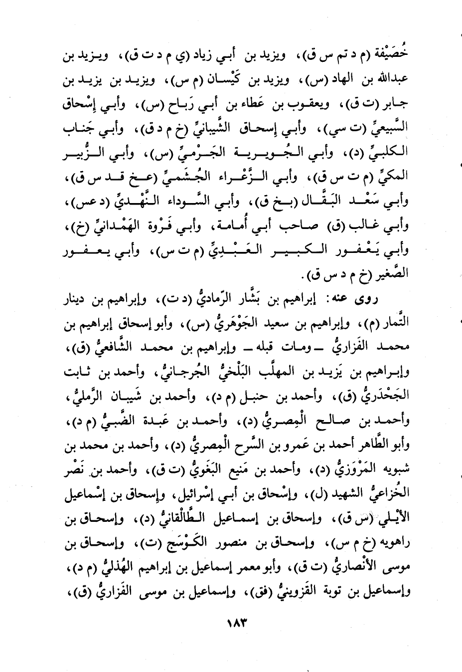 خصيفة (م د تم س ق) ، ويزيد بْن أَبي زياد (ي م د ت ق) ، ويزيد بْن عَبد اللَّهِ بْن الهاد (س) ، ويزيد بْن كيسان (م س) ، ويزيد بْن يَزِيدَ بْن جابر (ت ق) ، ويعقوب بْن عطاء بْن أَبي رباح (س) ، وأبي إِسْحَاق السبيعي (ت سي) ، وأبي إِسْحَاق الشيباني (خ م د ق) ، وأبي جناب الكلبي (د) ، وأبي الجويرية الجرمي (س) ، وأبي الزبير المكي (م ت س ق) ، وأبي الزعراء الجشمي (عخ قد س ق) ، وأبي سعد البقَالَ (بخ ق) ، وأبي السوداء النهدي (د عس) ، وأبي غالب (ق) صاحب أبي أمامة، وأبي فروة الهمداني (خ) ، وأبي يعفور الكبير العبدي (م ت س) ، وأبي يعفور الصغير (خ م د س ق) .