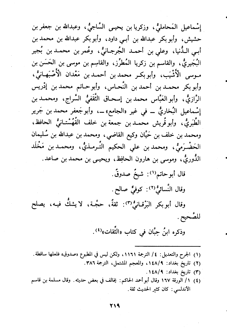 (1) الجرح والتعديل: 4 / الترجمة 1161، ولكن ليس في المطبوع"صدوق"فلعلها ساقطة.
