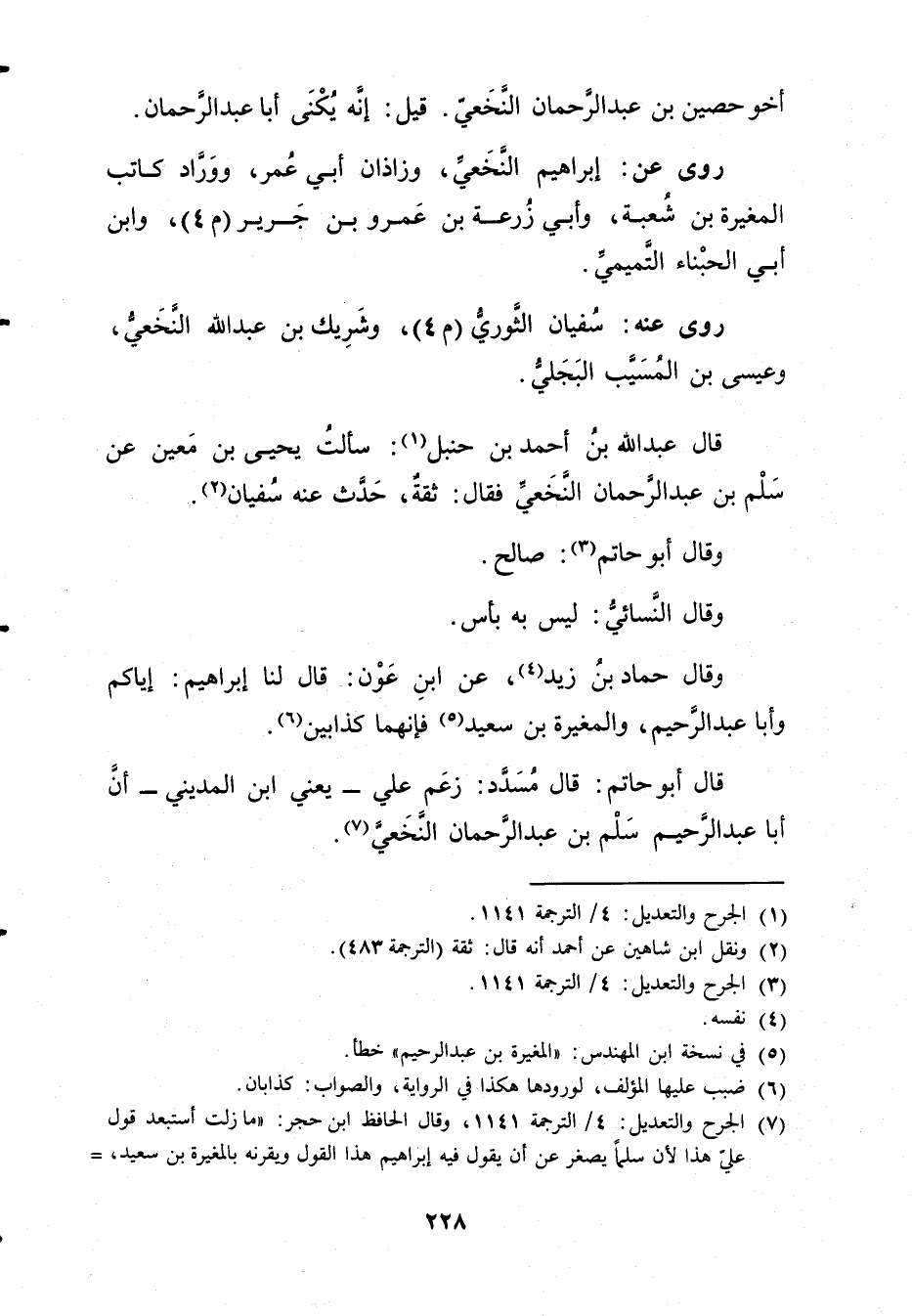 (7) الجرح والتعديل: 4 / الترجمة 1141، وَقَال الحافظ ابن حجر: ما زلت أستبعد قول علي هذا لان سلما يصغر عن أن يقول فيه إبراهيم هذا القول ويقرنه بالمغيرة بْن سَعِيد، =