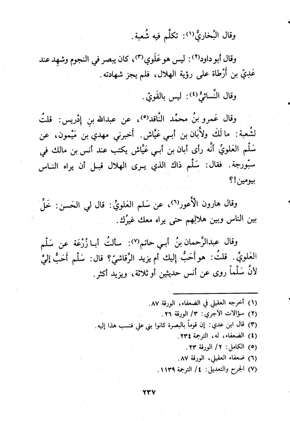 وَقَال عَبْد الرَّحْمَنِ بْن أَبي حَاتِم (7) : سألت أَبَا زرعة عن سلم العلوي.