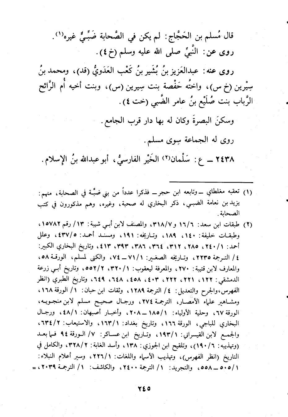 2438 - ع: سلمان الخير الفارسي (2) ، أَبُو عَبْد اللَّهِ بن الاسلام.
