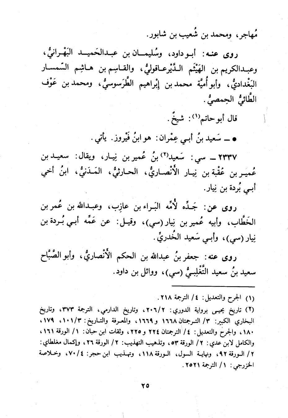 2337 - سي: سَعِيد بن عُمَير بن نيار (2) ، ويُقال: سَعِيد بْن عُمَير بْن عقبة بْن نيار الأَنْصارِيّ، الحارثي، المدني، ابْن أخي أبي بردة بْن نيار.