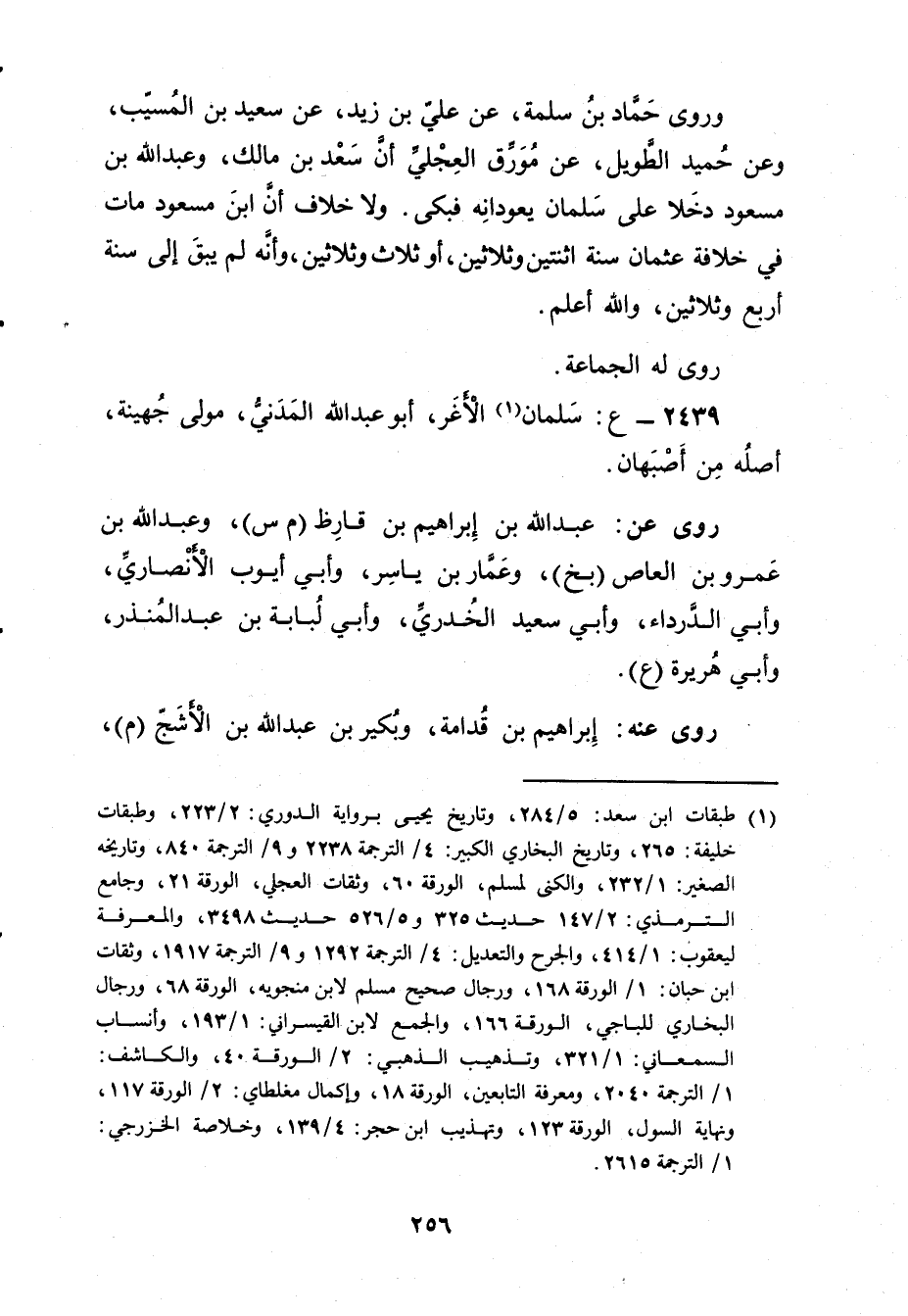 2439 - ع: سلمان الأَغَر (1) ، أَبُو عَبْد اللَّهِ المدني، مولى جهينة، أصله من أصبهان.