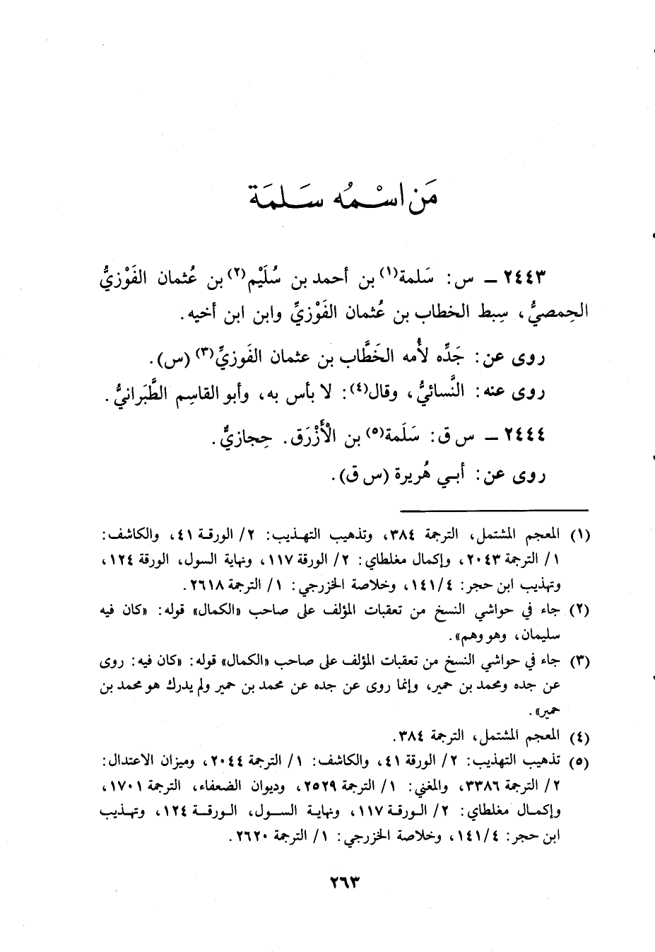 2443 - س: سلمة بْن أَحْمَدَ (1) بْن سليم (2) بْن عُثْمَانَ الفوزي الحمصي، سبط الخطاب بْن عُثْمَانَ الفوزي وابن ابْن أخيه.