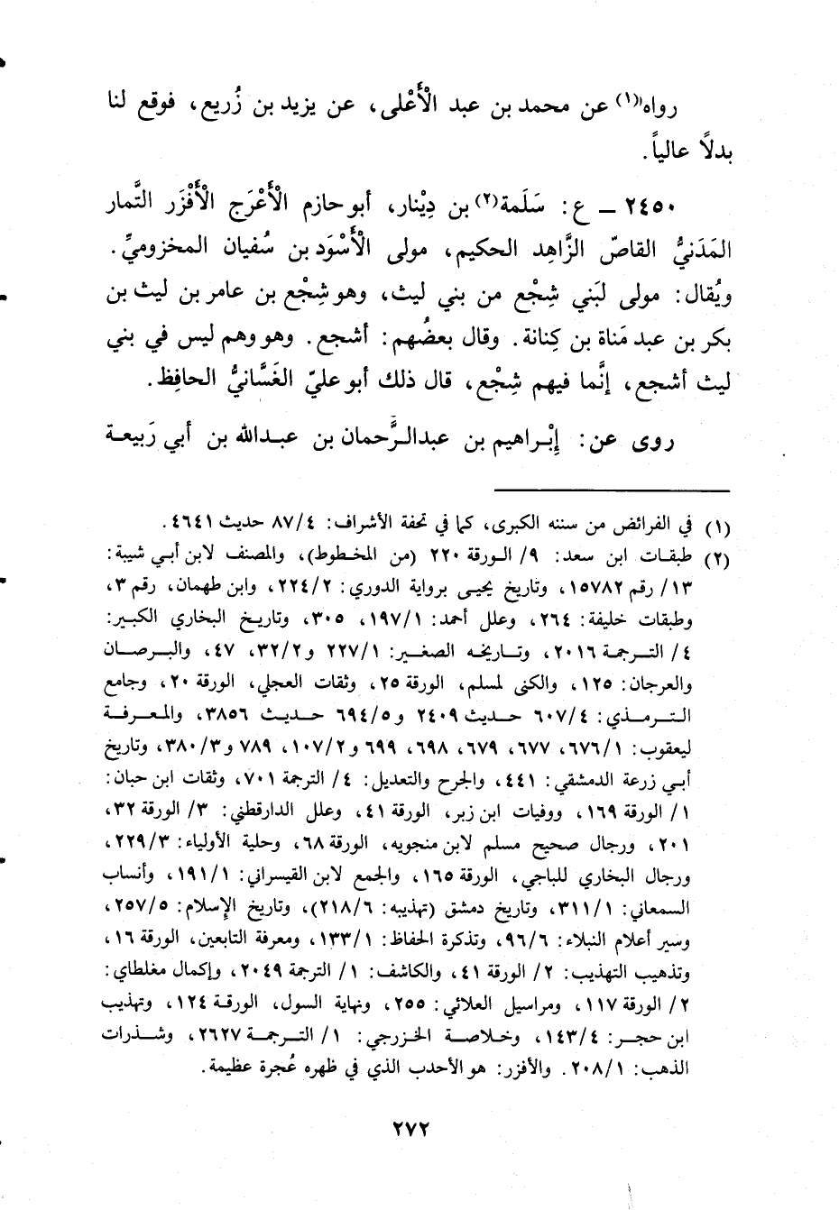 2450 - ع: سلمة بن دينار (2) ، أَبُو حازم الأعرج الأفزر التمار المدني القاص الزاهد الحكيم، مولى الأسود بْن سُفْيَان المخزومي.