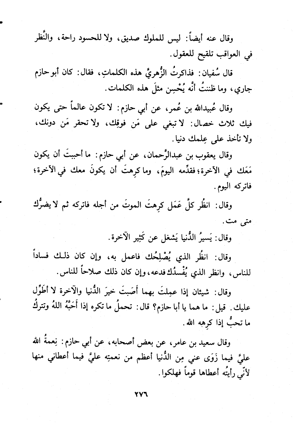 قال سُفْيَان: فذاكرت الزُّهْرِيّ هذه الكلمات، فقَالَ: كان أَبُو حازم جاري، وما ظننت أَنَّهُ يحسن مثل هذه الكلمات.