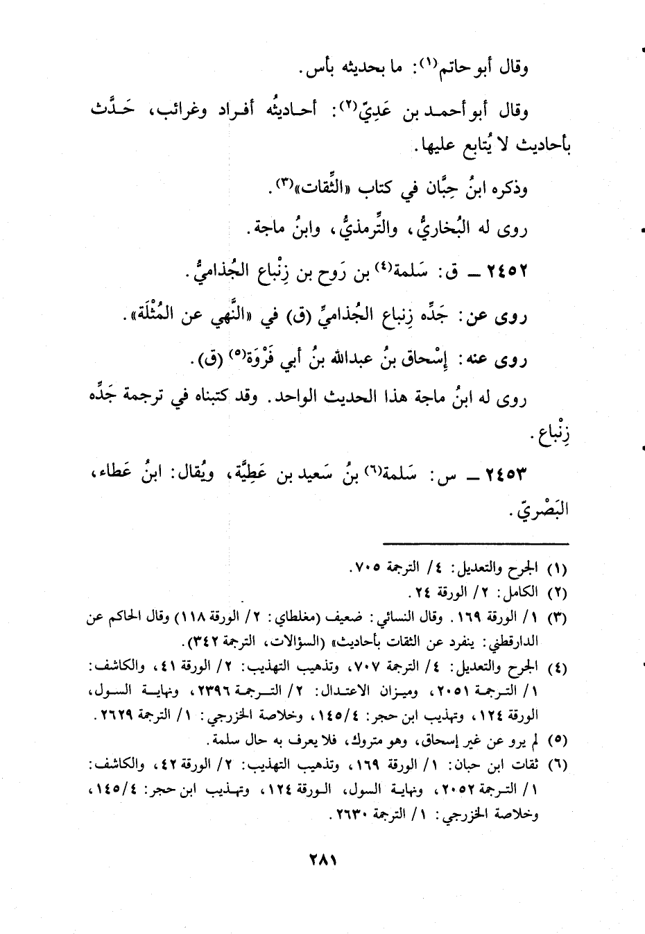 (6) ثقات ابن حبان: 1 / الورقة 169، وتذهيب التهذيب: 2 / الورقة 42، والكاشف: 1 / الترجمة 2052، ونهاية السول، الورقة 124، وتهذيب ابن حجر: 4 / 145، وخلاصة الخزرجي: 1 / الترجمة 2630.