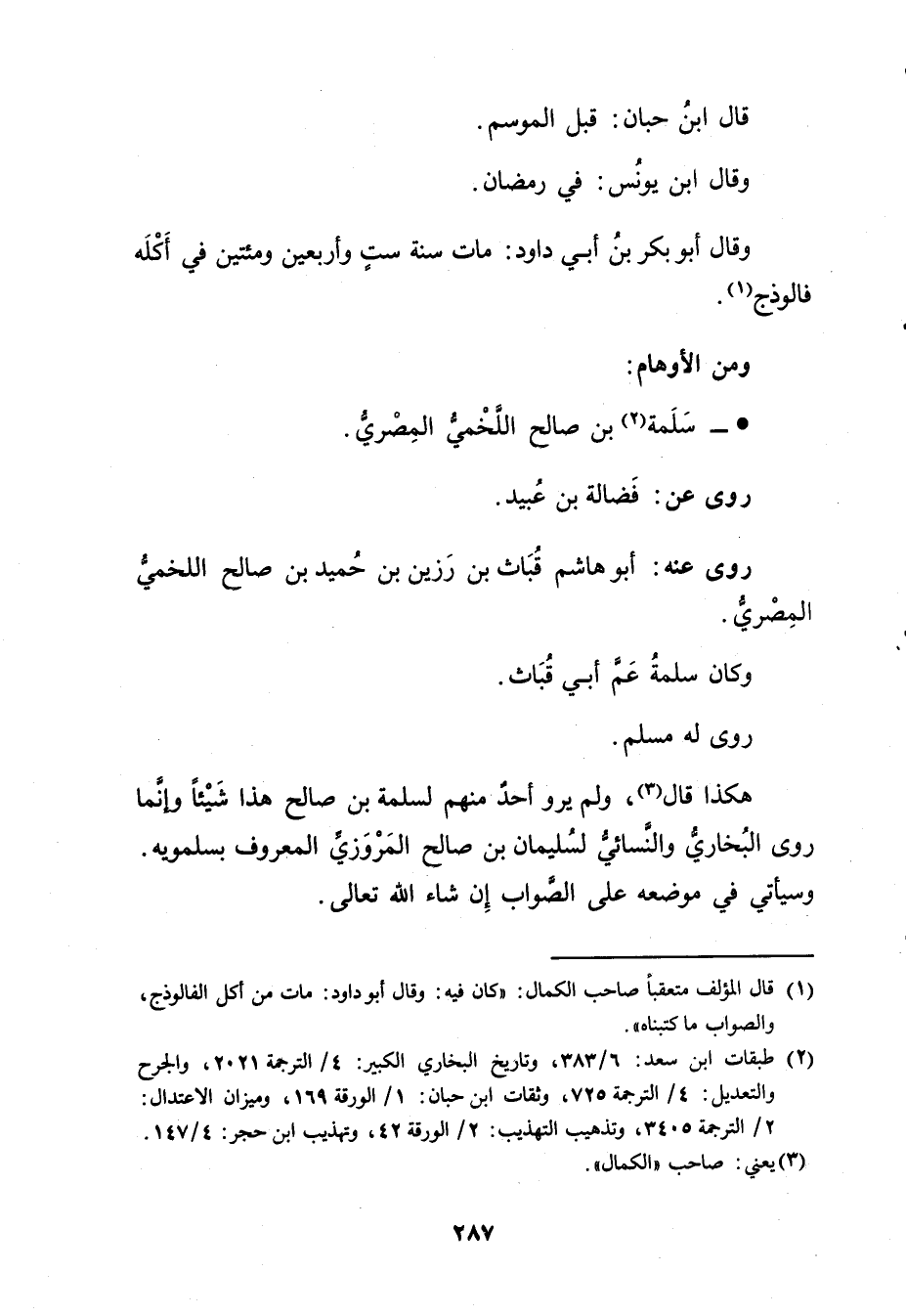 (1) قال المؤلف متعقبا صاحب الكمال: كان فيه: وَقَال أبو داود: مات من أكل الفالوذج، والصواب ما كتبناه.